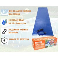 Легко, с помощью коврика нагревателя для бассейнов. Коврик располагается под бассейном и поддерживает тёплое состояние воды. Мощности хватает на подогрев на 10 - 15 градусов.