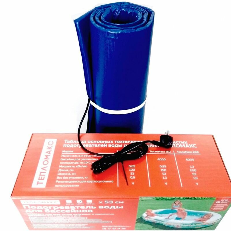 Электроподогреватель " ТеплоМакс" для воды в надувном (каркасном) бассейне 200х53см. 220Вт; 1,3кВт; 6000л; вес 1,6 кг.