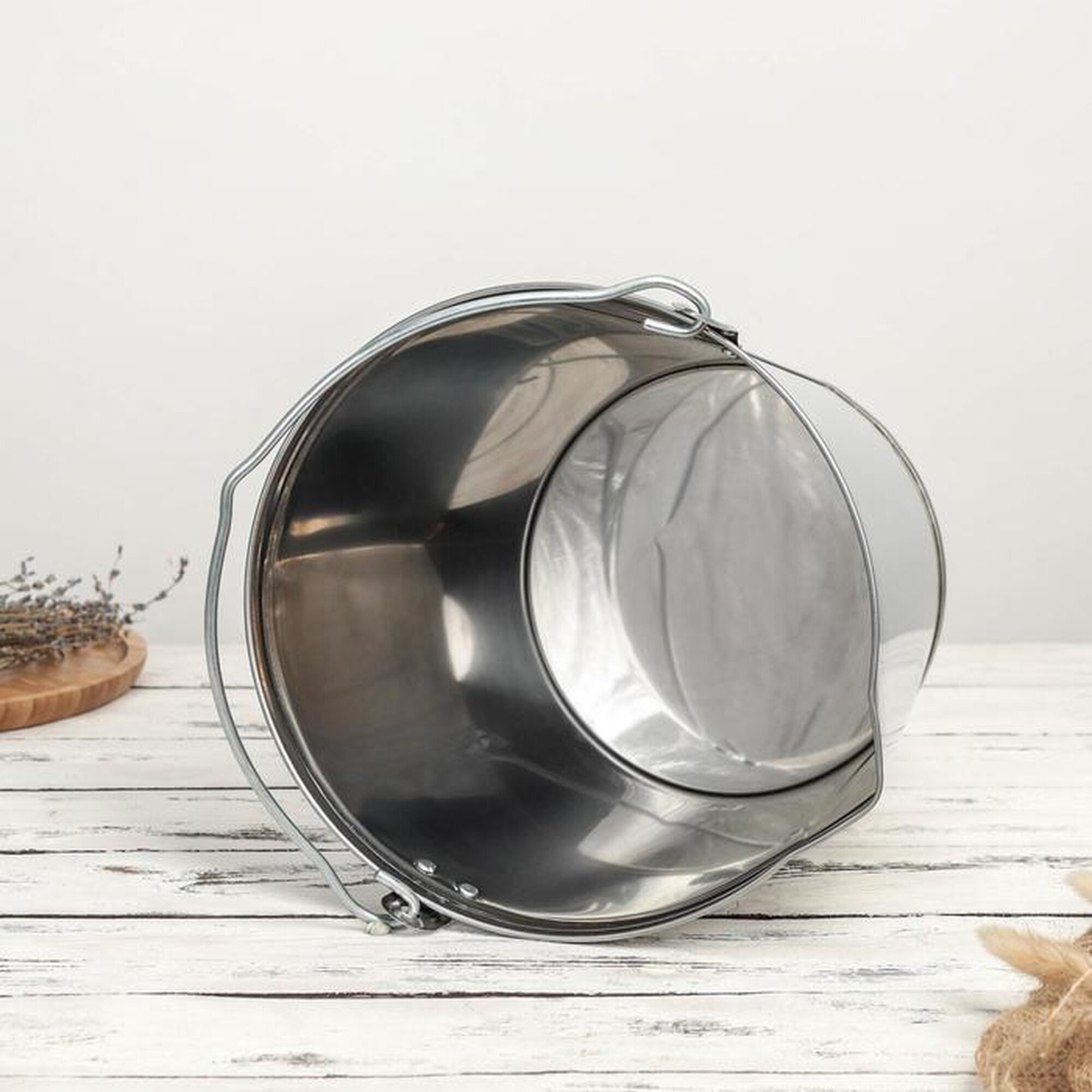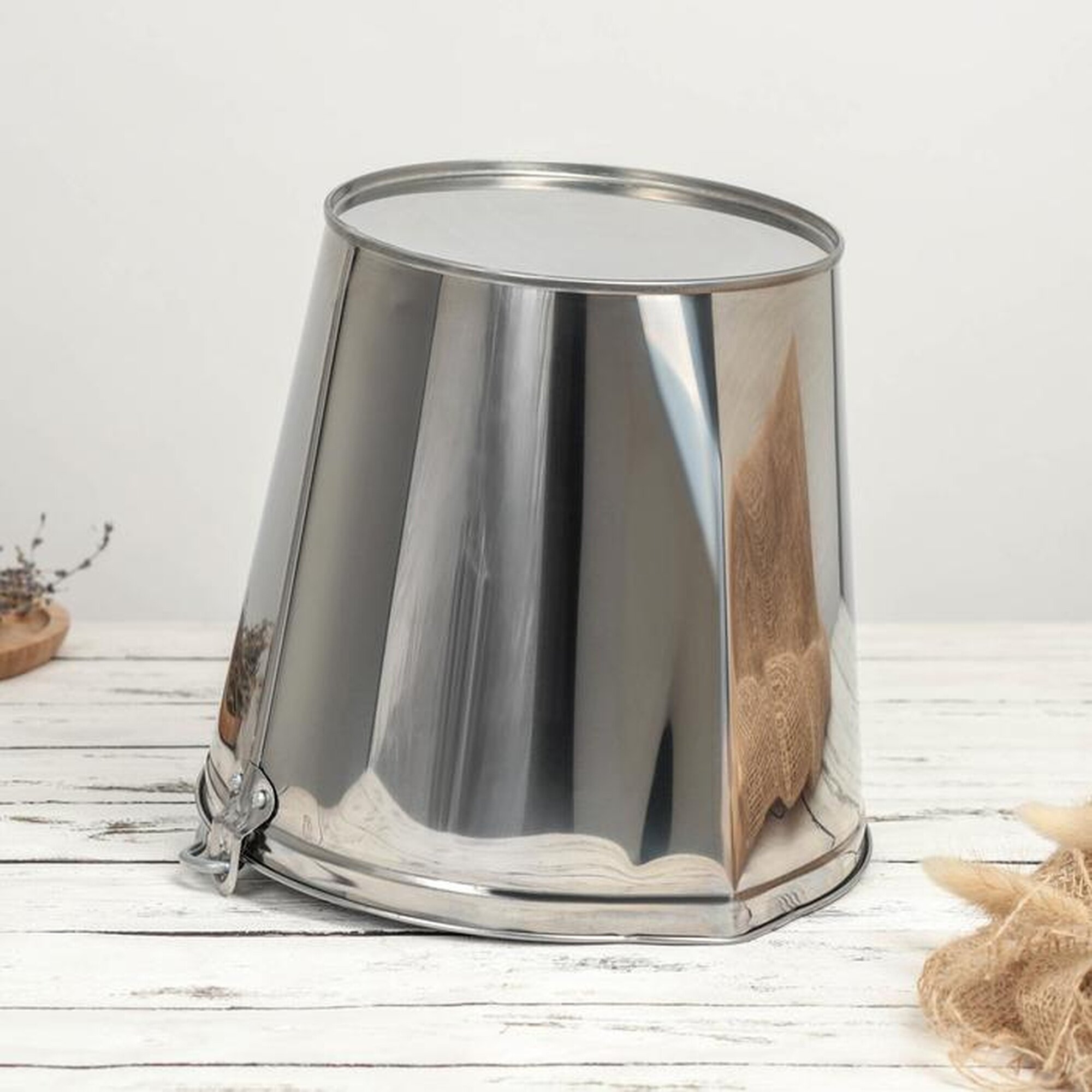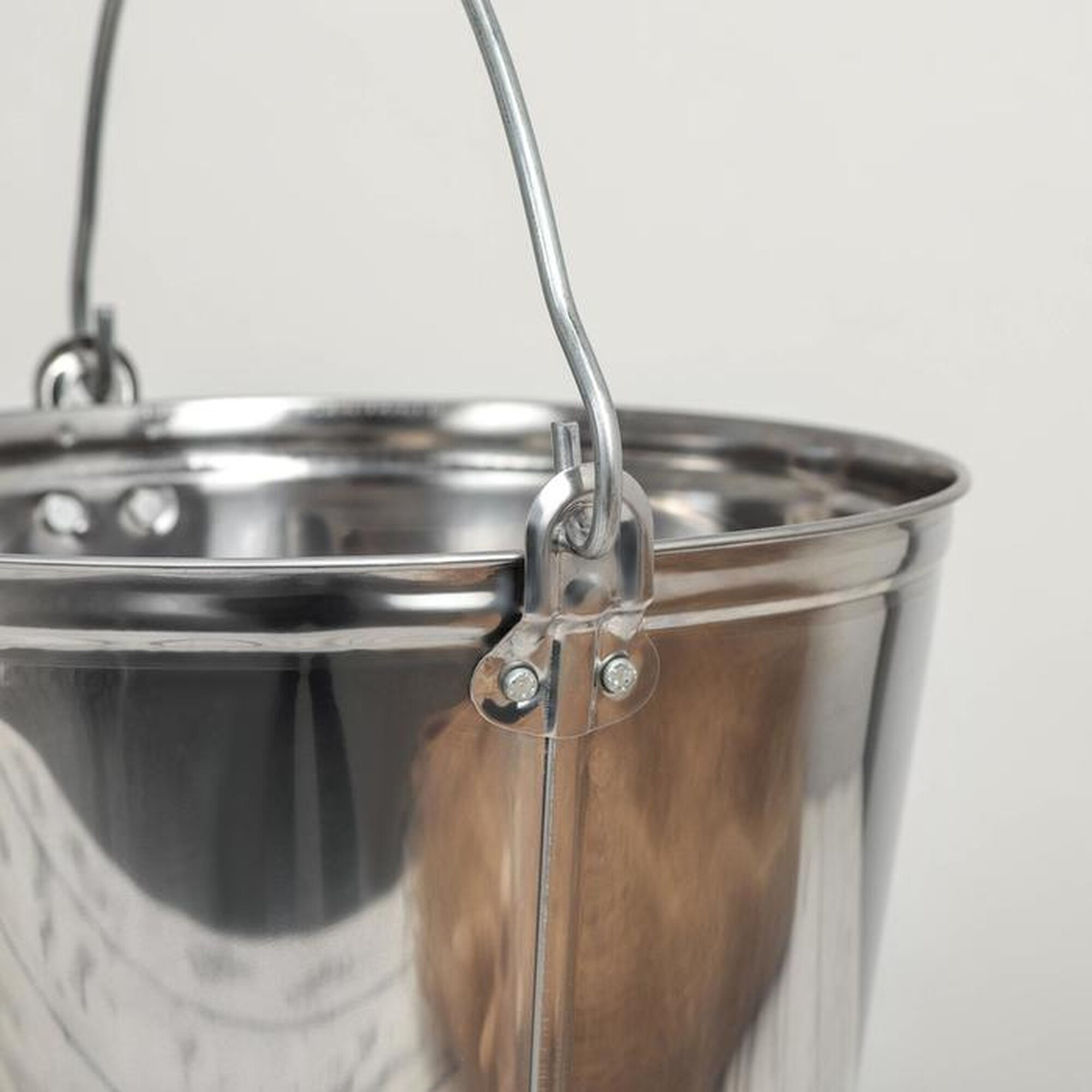 Ведро выполнено из нержавеющей стали, что обеспечивает его долговечность и устойчивость к коррозии. Благодаря этому, ведро подходит для использования в пищевых целях и выдерживает до 50 кг нагрузки.