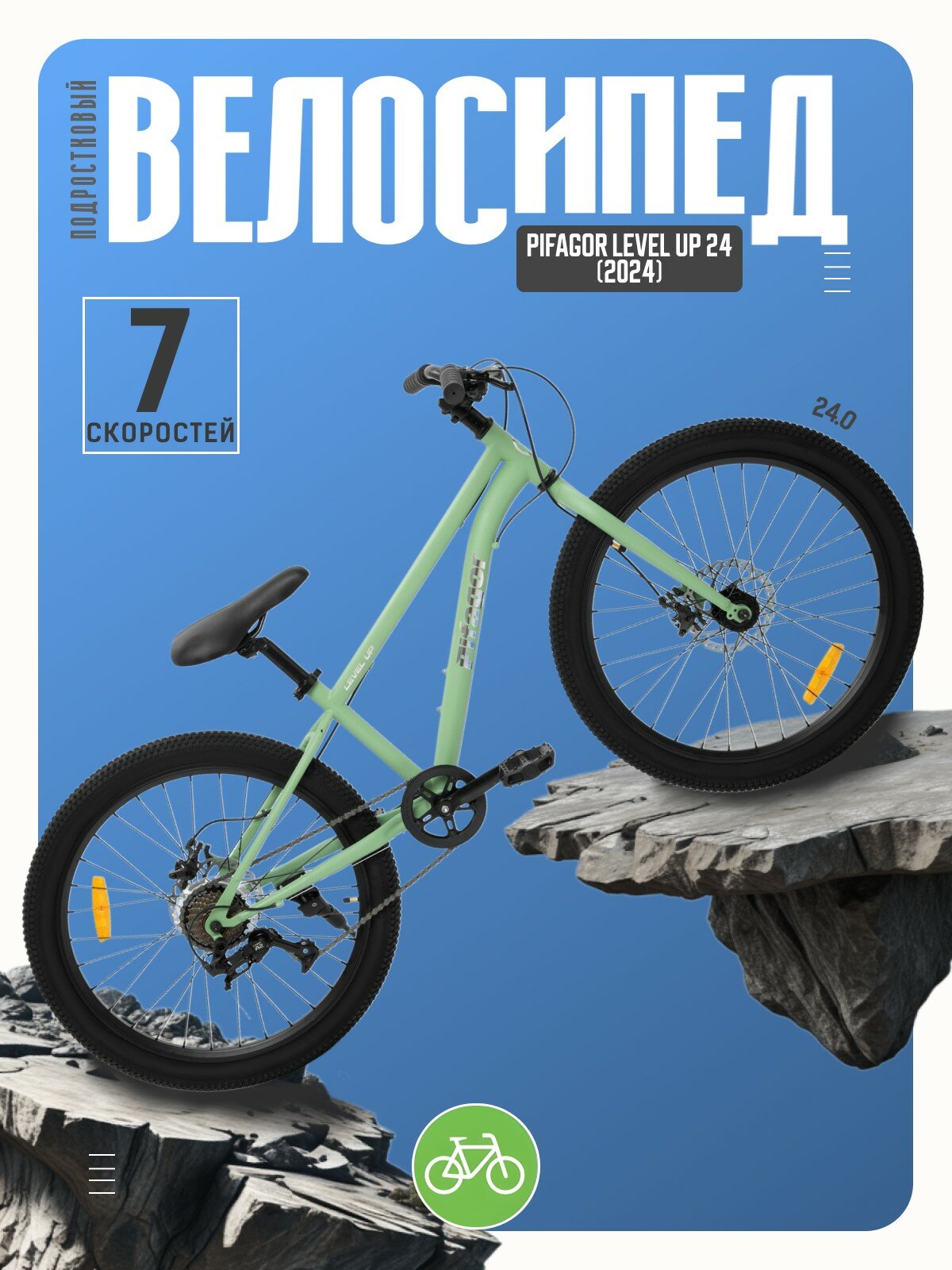 Купить Подростковый велосипед Pifagor Level Up 24, год 2024, цвет Зеленый с доставкой по всей России. Подростковый велосипед Pifagor Level Up 24, год 2024, цвет Зеленый: сравнение цен, характеристики, фото, актуальное наличие и цены.
