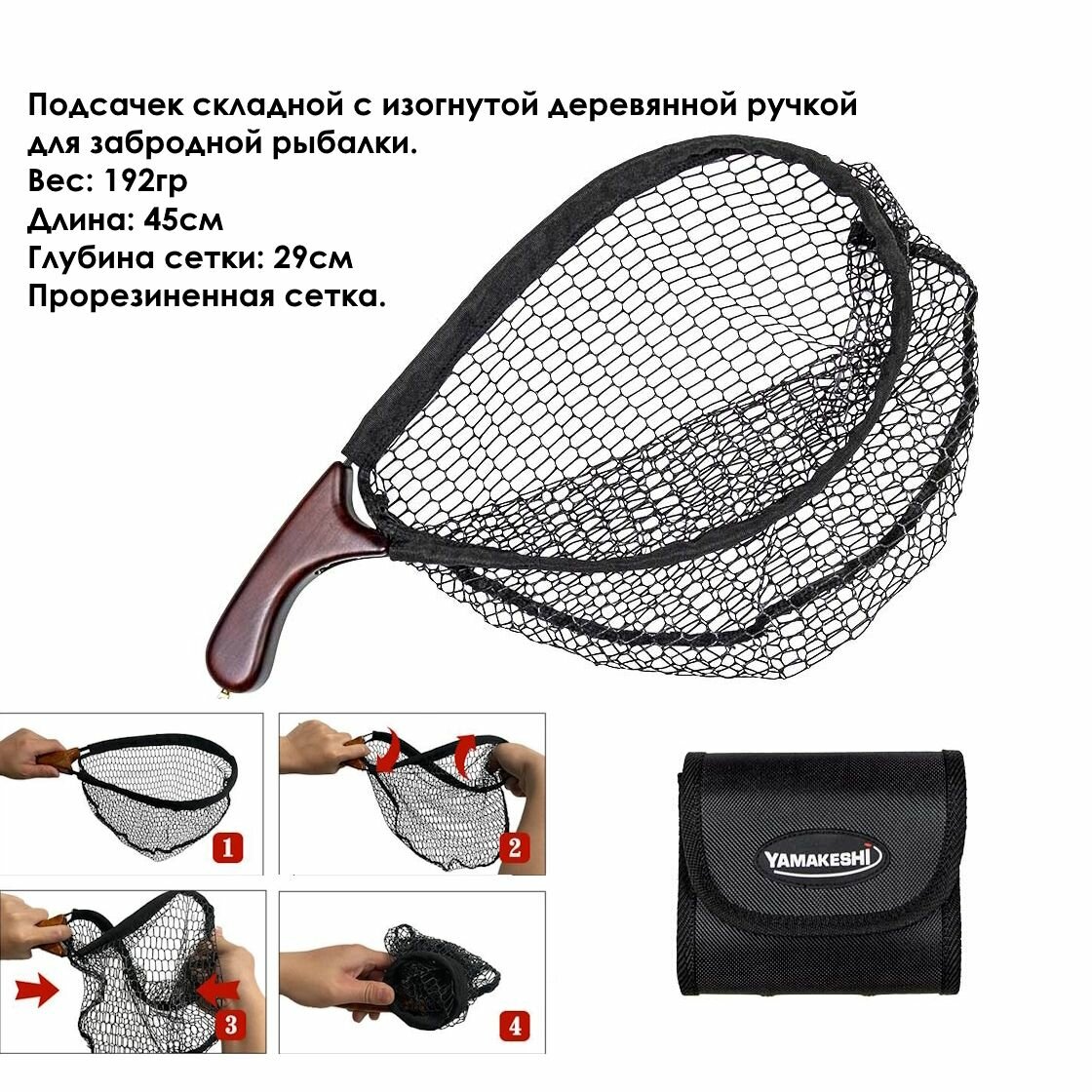 Подсачек Yamakeshi 45см складной с изогнутой ручкой в сумке для забродной рыбалки — red: сравнение цен, характеристики, фото, актуальное наличие и цены.