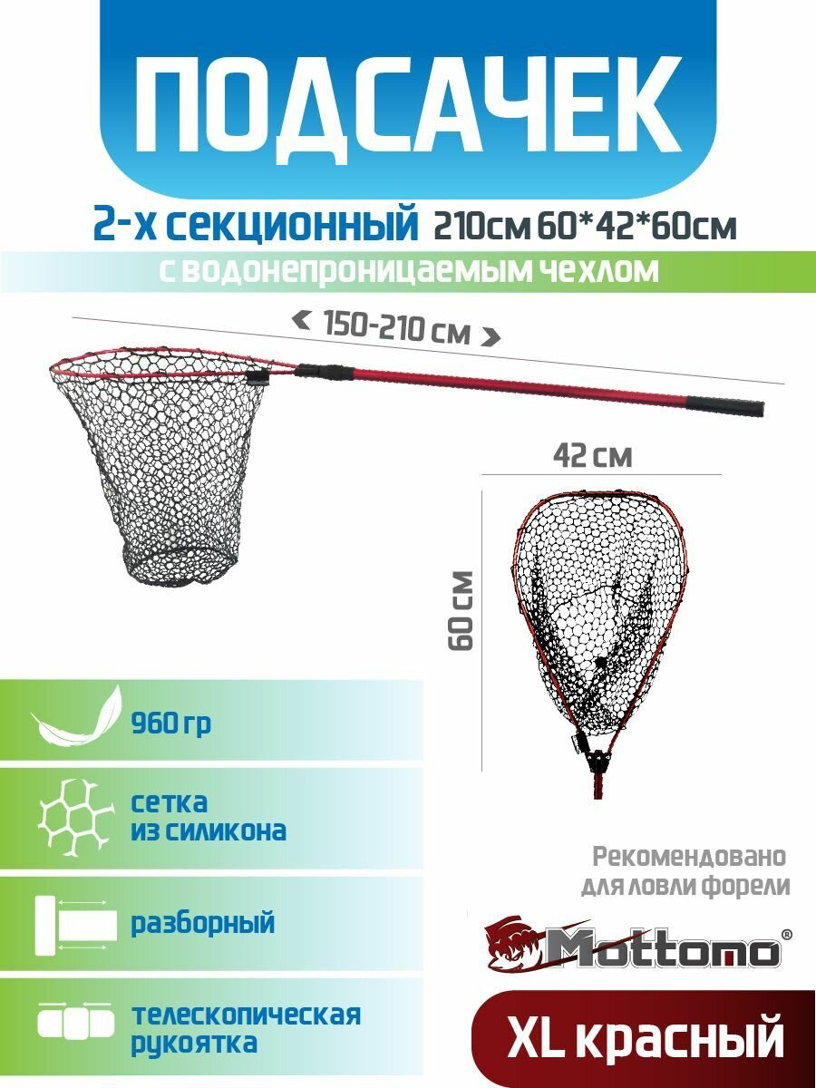 Подсак для рыбалки Mottomo 2-х секционный 210см 60*42*60см XL красный силиконовый для форели складной легкий (с чехлом): сравнение цен, характеристики, фото, актуальное наличие и цены.