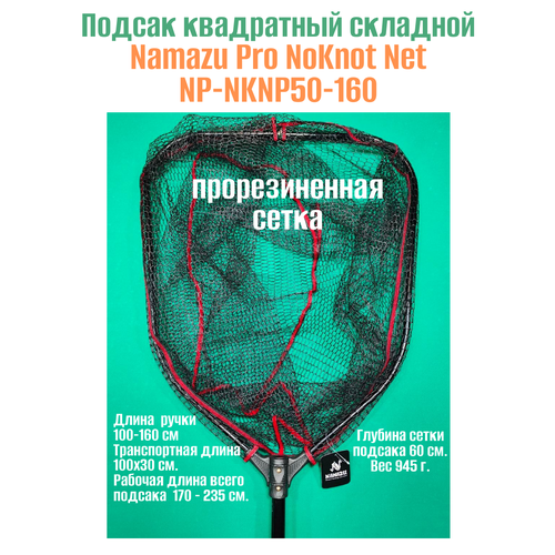 Подсак Namazu Pro NoKnot Net PVC прорезиненная сетка 160см, квадратный складной обод 50см: сравнение цен, характеристики, фото, актуальное наличие и цены.