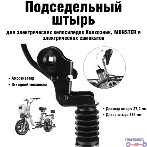 Подседельный штырь d27.2 с амортизатором и откидным механизмом электрических велосипедов типа Колхозник, moster и самокатов серии M4: сравнение цен, характеристики, фото, актуальное наличие и цены.