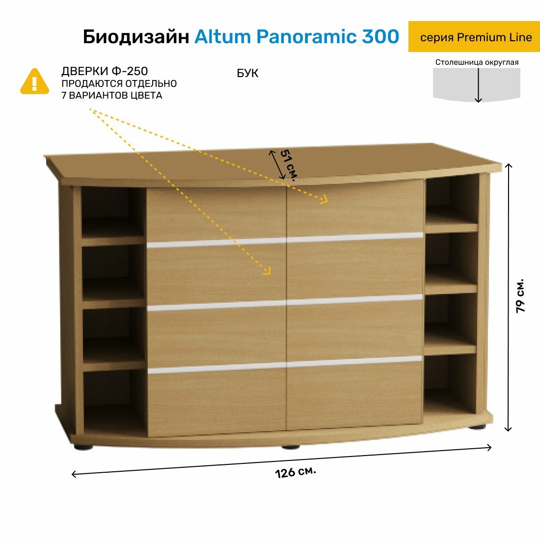 Купить Тумба без дверок под аквариум Biodesign ALTUM PANORAMIC 300 (бук) влдсп 126*51*79 см с доставкой по всей России.