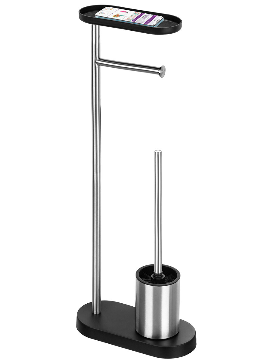 Купить Подставка, держатель, стойка для туалетной бумаги и ершика 26х11,5х67,5 см El Casa Серебристый с доставкой по всей России.