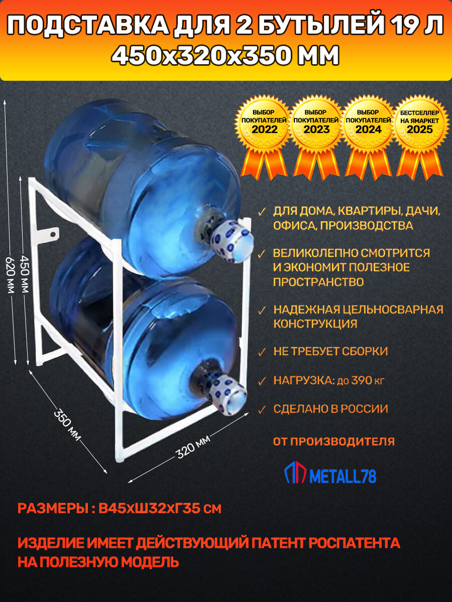 Подставка для бутылок в количестве 2 шт. (бутылей с водой емкостью 18,9 л.) является одним из самых нужных и полезных предметов мебели и интерьера для Вашего дома, дачи, квартиры, кабинета, офиса, склада или производства.