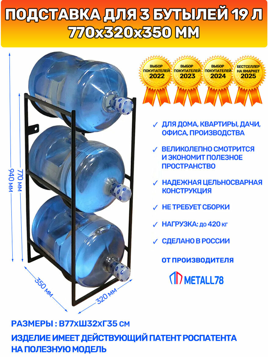Подставка для 3 бутылей 19 литров, В770хШ320хГ350 мм, стеллаж, этажерка, полка, бутылочница, цвет чёрный: сравнение цен, характеристики, фото, актуальное наличие и цены.