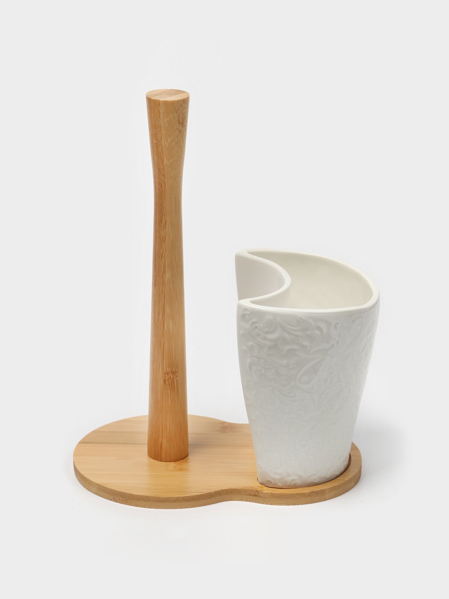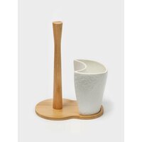 Подставка для бумажных полотенец и кухонных принадлежностей BellaTenero, 19.5×12.5×25.5 см, фарфор, бамбук, белая