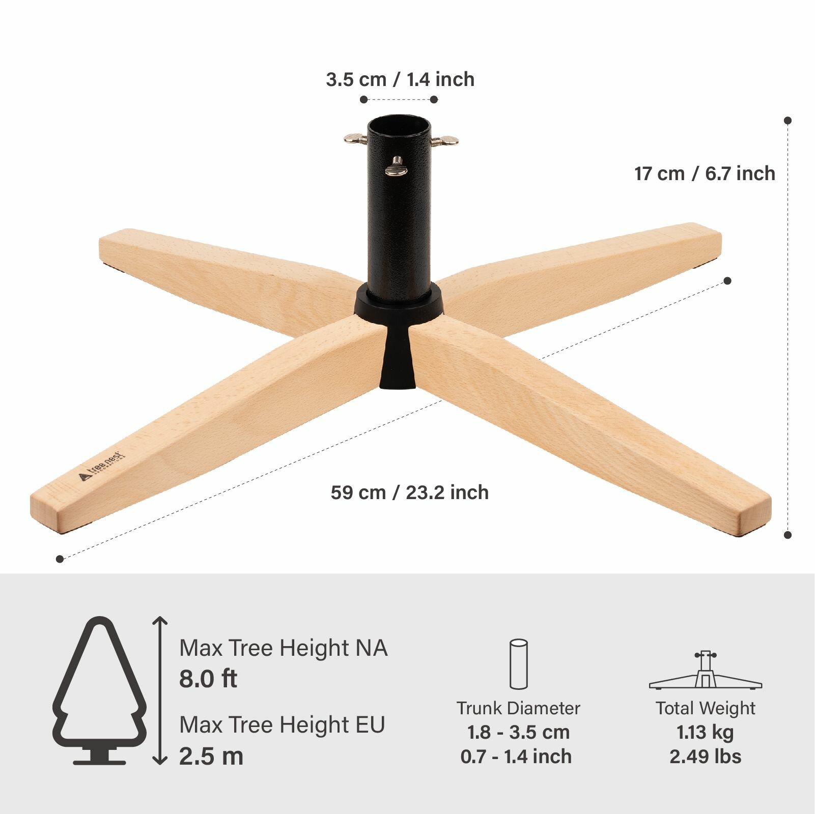 Подставка под елку Gentle Christmas Tree Stand M Black – это элегантное и надежное решение для установки новогодней елки высотой до 250 см. Изготовленная из прочного металла и дерева, она обеспечивает стабильную поддержку для стволов диаметром от 1,8 до 3,5 см. С легким весом в 1130 г, подставка удобна в использовании и транспортировке. Классический черный цвет придаёт ей современный и стильный вид, который отлично впишется в любой интерьер, добавляя нотку утонченности в ваше праздничное оформление.