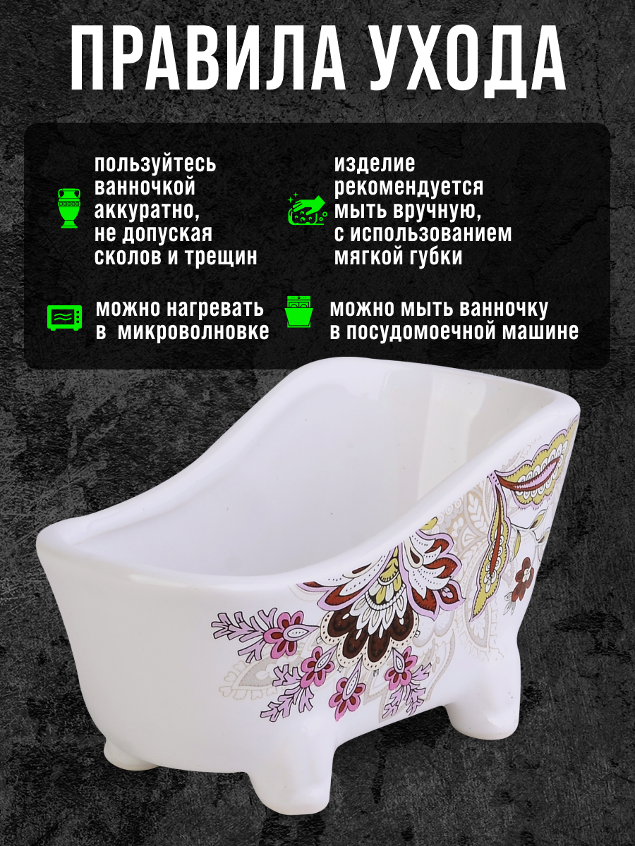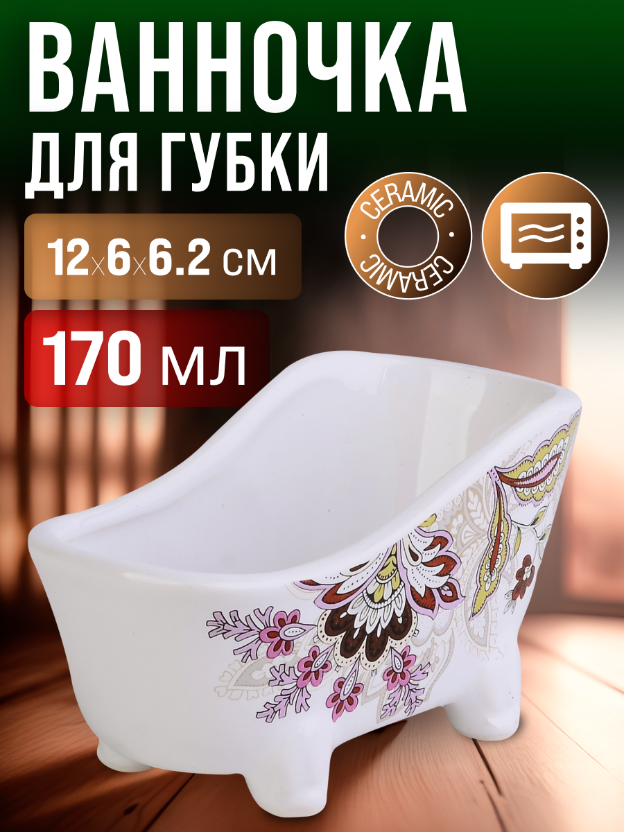 Подставка для губки LORAINE изготовлена из качественной доломитовой керамики. Оригинальная подставка выполнена в форме миниатюрной ванны на четырех ножках. Такая подставка является незаменимой вещью на каждой кухне, потому что теперь Вы всегда сможете класть мокрую после использования губку в одно и то же место, не оставляя ее на бортике раковины. Яркая и оригинальная, подставка LORAINE сочетает в себе современный дизайн с максимальной функциональностью, а красочность оформления придется по вкусу любой хозяйке. Изделие упаковано в индивидуальную коробку. Подходит для использования на кухне и в ванной комнате. Рекомендуется мыть руками.