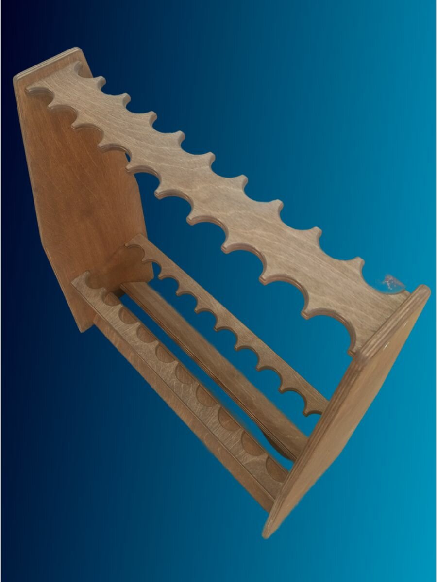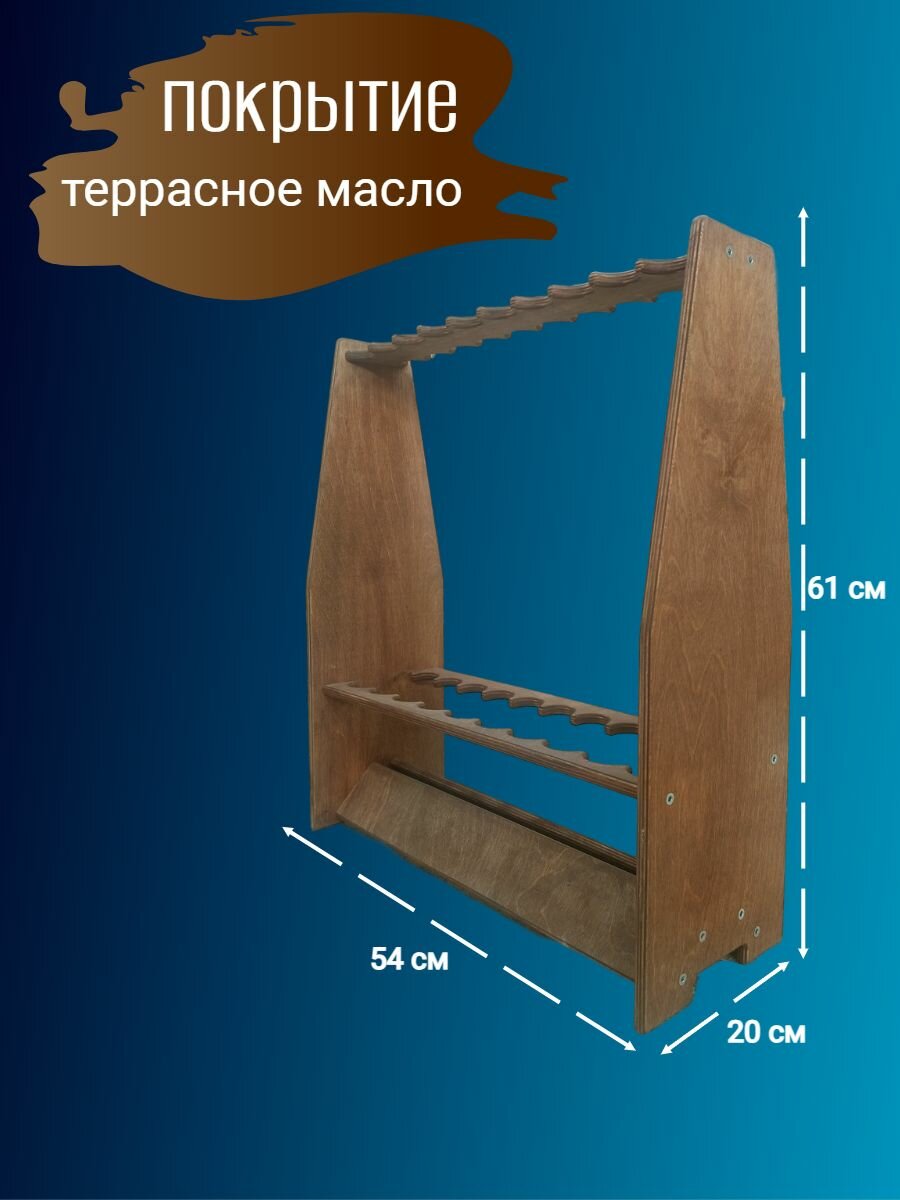 Не упустите возможность сделать вашу рыбалку более комфортной и организованной! Подставка для хранения удочек — это не просто аксессуар, а необходимый элемент снаряжения каждого рыболова. Заказывайте уже сегодня и наслаждайтесь порядком в своём рыболовном оборудовании! Стойка изготовлена из фанеры высшего сорта толщиной 12 мм. Каждая деталь проходит трех ступенчатый цикл шлифовки что обеспечивает высокое качество изделия. В стойке "М20" возможно разместить одновременно до 20-ти спиннингов одновременно при этом к ним будет обеспечен свободный и удобный доступ!