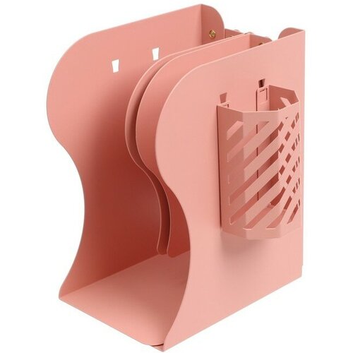 Подставка для книг металлическая deVENTE, 190 х 147 х 90 мм, телескопическая, с подставкой для пишущих принадлежностей, розовая
