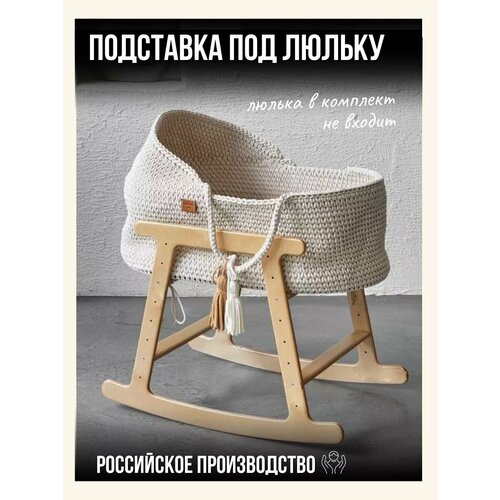 Подставка - качалка под вязаную/плетеную корзину-колыбель из хлопкового или полиэфирного шнура. Подставка для люльки покрыта прозрачным бесцветным лаком, безопасным для детей. Подходит для люльки шириной не более 40 см. Размеры подставки: 50х67х45 см (ВхШхГ). Подставка под люльку компактная, легкая, и не занимает много места, благодаря чему её удобно переставлять в нужное место. Подставка деревянная превращает люльку в полноценную кроватку. Конструкция прочная, устойчивая, не токсичная. Такой держатель люльки, будет незаменимым помощником для мамы при уходе за малышом. Маме не придется наклоняться низко к малышу и носить люльку на руках. Подставка для колыбели доставляется в разобранном виде с креплением. Прекрасно подойдет в качестве подарка на рождение ребенка или гендер-пати.