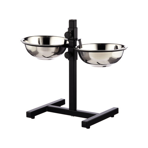 Подставка для мисок, разборная, для 2 мисок по 0,6 литр, INFILD Подставка, оснащенная 2-мя нержавеющими мисками объёмом 0,6 литра, подходит для собак средних пород. Миски крепятся на кронштейн, который регулируется по высоте и фиксируются возле основания. Миски для животных, Подставки для собаки с двумя мисками, регулируемая стойка-штатив с мисками для собак, миска двойная из нержавеющей стали на подставке, Кормушка для собак складная, Подвесные миски для собак, щенков с креплением на стойке, Стойка для кормления собак с двумя мисками, тарелками, Кормушка для мелких и средних собак, Кормушка для небольших собак, Стойка с мисками для собак средних пород.