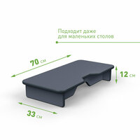 Преимущества: Эргономика — приподнимает монитор, снижая нагрузку на шею и глаза. Универсальность — подходит для широкоформатных мониторов и компактной акустики. Практичность — пространство под подставкой удобно использовать для клавиатуры, периферии, мобильных устройств или личных вещей. Индивидуальный стиль — выбор цвета из нескольких вариантов массива и канта. Качество — изготовлена из прочного ЛДСП 16 мм и окантована ПВХ, что обеспечивает устойчивость и защиту стола от царапин.