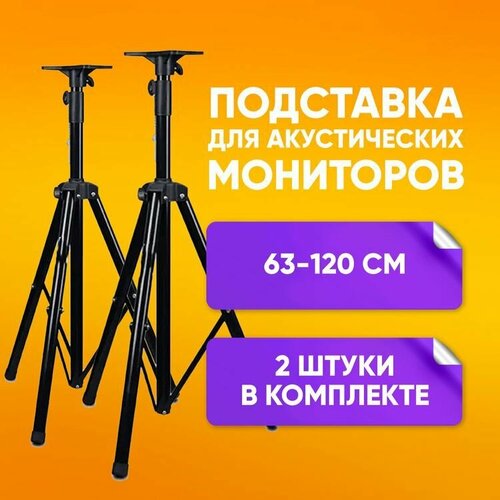 Профессиональные стойки для акустических систем, студийных мониторов и колонок. Имеют складную конструкцию, что позволяет легко их брать с собой на выступления, концерты или при переездах. Подставки не занимают много места, отлично подойдут для установки колонок сзади телевизора или монитора. Ножки имеют противоскользящее покрытие для гашения вибрации и большей устойчивости стоек на поверхности. Подставки для колонок регулируются по высоте от 63 см (минимальная высота) до 120 см (максимальная высота). Монтаж акустики производится двумя способами:с помощью гнезда в оборудовании - диаметр 35 мм; или с помощью кронштейна (монтажная площадка для нестандартного оборудования). Подставки отлично подойдут для дома, студии танцев, студии звукозаписи и других помещений, где необходимо установить акустику.