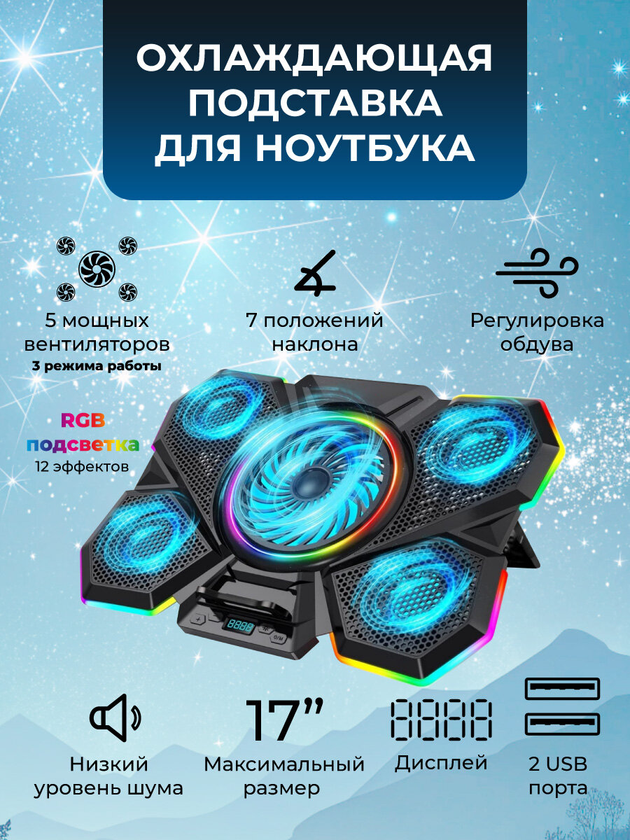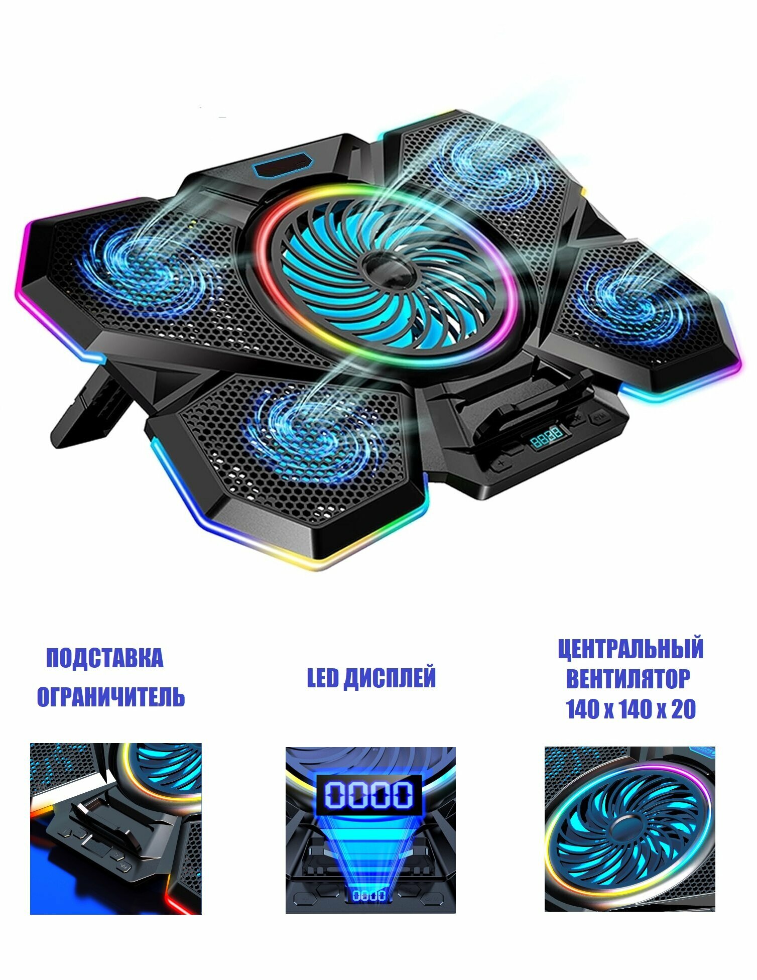 | Особенности | антискользящая поверхность, подсветка, регулировка высоты, регулировка скорости вращения вентилятора, регулируемый угол наклона, с охлаждением, с упором |