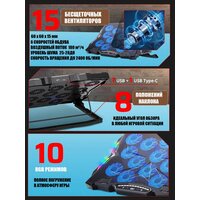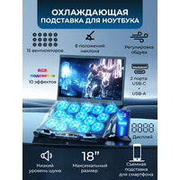 Охлаждающая подставка для ноутбука до 18″, 15 вентиляторов RGB c подставкой для смартфона: сравнение цен, характеристики, фото, актуальное наличие и цены.