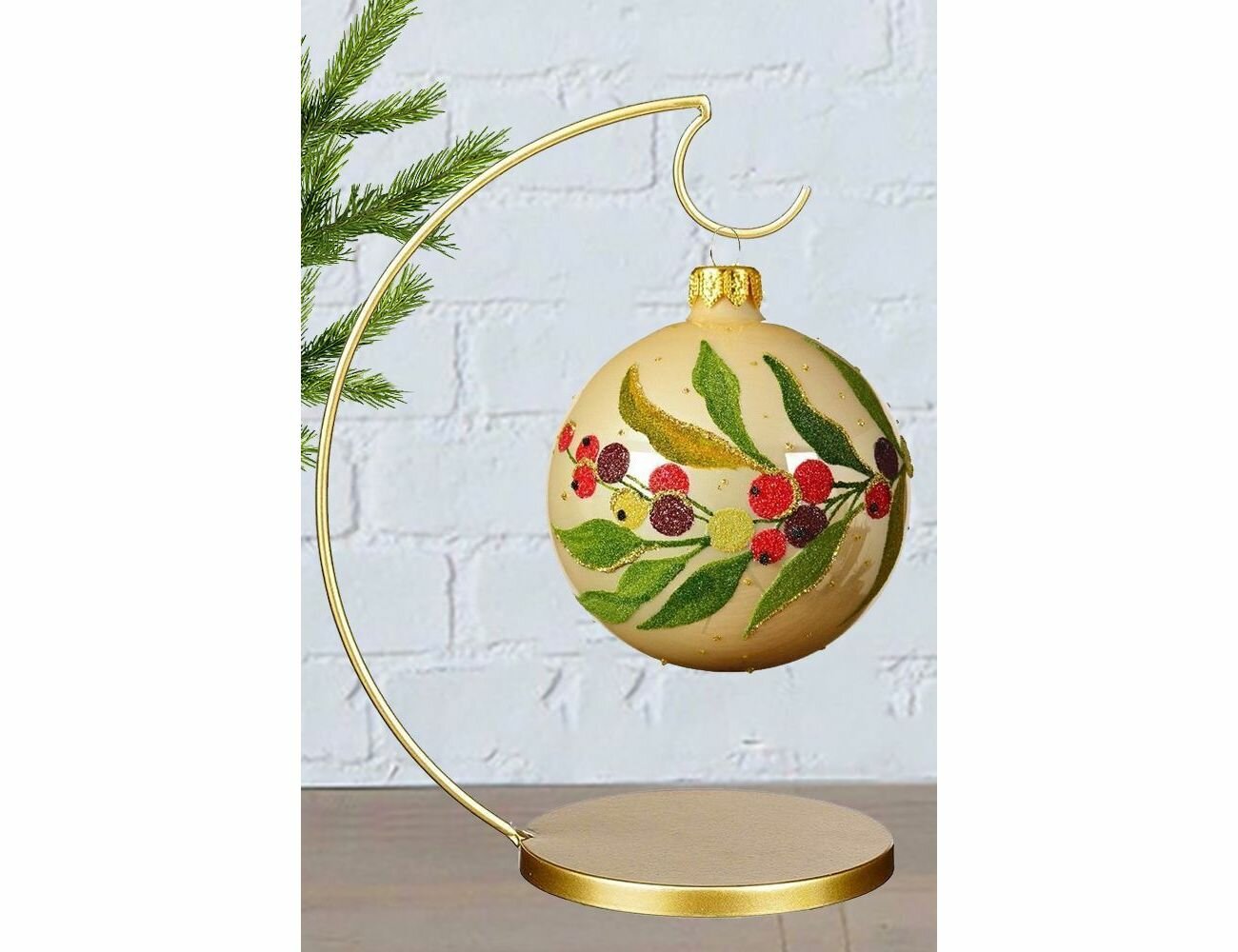Очень изящная, стильная и практичная подставка поможет вам отдельно насладиться красотой и оригинальностью любимого дизайнерского шара или подвесного украшения. Такая соло-композиция может стать очень красивым элементом сервировки праздничного стола, украшением рабочего стола или столика в спальне.