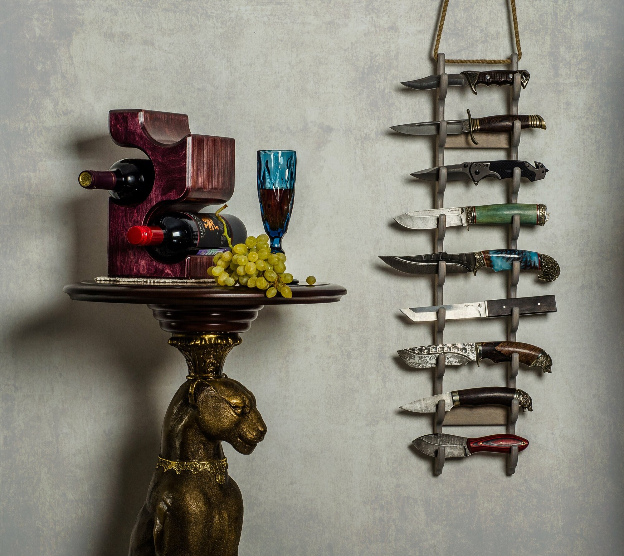 Композиция: Модель Cliff станет частью интерьера и представит вашу коллекцию холодного оружия наилучшим образом, а также ножи будут аккуратно храниться как произведение искусства на вашей стене.