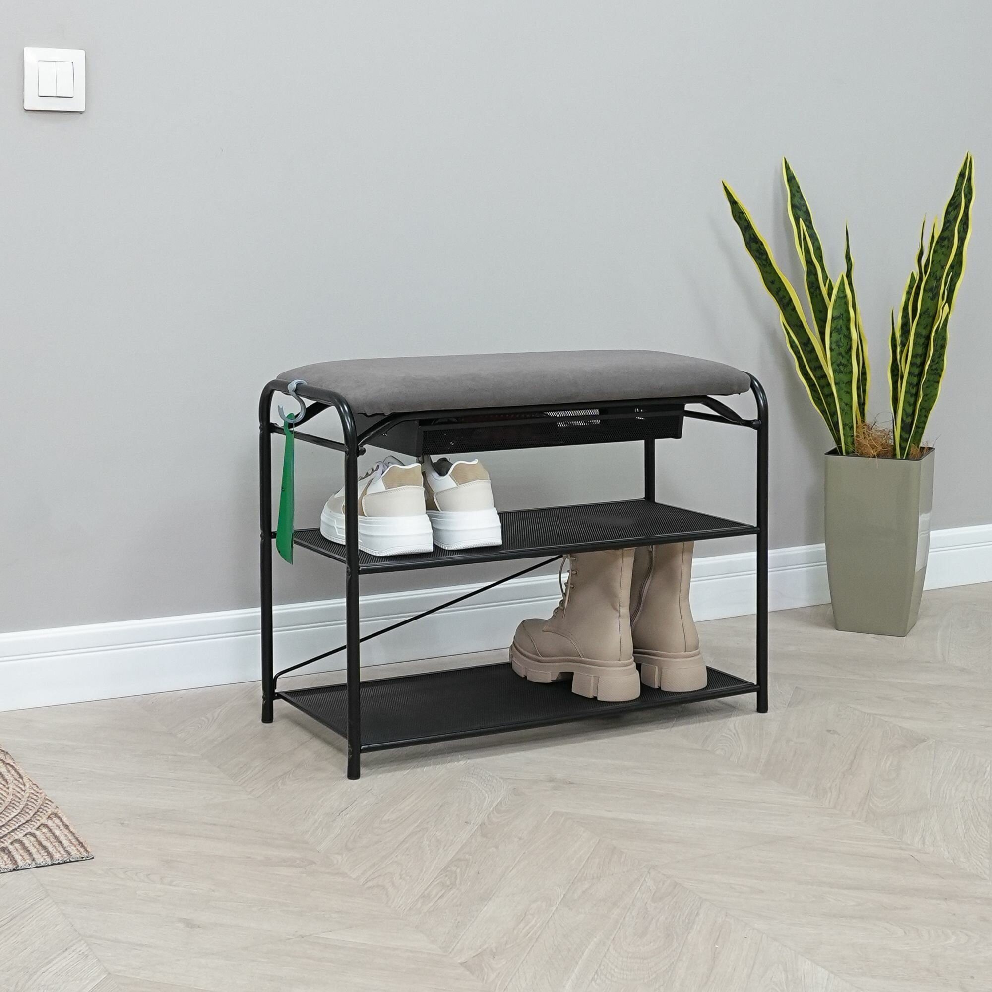 Друзья, обратите внимание - у данной модели молочно-белый цвет. Он отличается от белоснежно-белого. Просьба учитывать это при оформлении заказа. Ищете идеальное решение для хранения обуви в коридоре, гостиной или на балконе? Обувница Гранада 23В от производителя ЗМИ - это самая вместительная и удобная открытая система хранения обуви, которую вы когда-либо видели! Каркас многоуровневой обувницы сделан из прочного металла, устойчивого к износу. Сталь изделия покрыта полимерным слоем, который защищает материал от коррозии и механических повреждений. Откидное сиденье мягкое. Оно изготовлено из антивандальной ткани нубука. Этот материал эстетичный и долговечный. Эта домашняя мебель идеально подходит для хранения обуви разных размеров и формы, а также для хранения ключей и других аксессуаров. Удобная и практичная конструкция обувной подставки включает в себя 2 полочки. Каждая из них способна вместить до 3 пар обуви и выдерживает нагрузку до 8 кг. Ярусы двойной обувной лавочки подходят для хранения сапог, кроссовок, туфель и даже роликов. Подходит для детской и взрослой уличной обуви. Полки снабжены решеткой, которая обеспечивает проветривание и быструю сушку обуви. Сверху предусмотрена скамейка с мягкой обивкой. Вы можете с комфортом садиться, чтобы надеть или снять обувь, а также сажать на нее ребенка при обувании. Скамья выдерживает вес до 120 кг. Сиденье откидывается. Внутри расположен ящик для хранения обувного крема, комплектов запасных шнурков и других полезных вещей и мелочей. Также сбоку есть пластиковый крючок для зонтика, обувной ложки или сумки. Этажерка снабжена удобными ножками с пластиковыми заглушками для напольной установки. Они не скользят и не царапают поверхность пола. Универсальный дизайн стеллажа и классические цвета идеально впишутся в интерьер вашего дома. Модель доступна в нескольких дизайнах: черный с коричневой сидушкой, медная с коричневой сидушкой, молочно-белая с бежевым сиденьем. Многофункциональная обувница с несколькими отделениями компактная: ширина 65 см, высота 48 см, глубина 30 см. Поэтому металлическая галошница подходит для маленьких квартир и студий. Сборная этажерка для обуви - лучшее решение для квартиры, офиса, гостиничного номера или дачи. Вы сможете разместить ее даже у порога частного дома на улице, ведь ее стиль будет гармонировать с любым фасадом. Обувница поставляется в разобранном виде в прочной картонной упаковке. Для этого потребуется фигурная отвертка под крестик, а вся необходимая фурнитура есть в комплекте. У нас есть акции и распродажи, вы можете купить наши товары в подарок со скидкой!