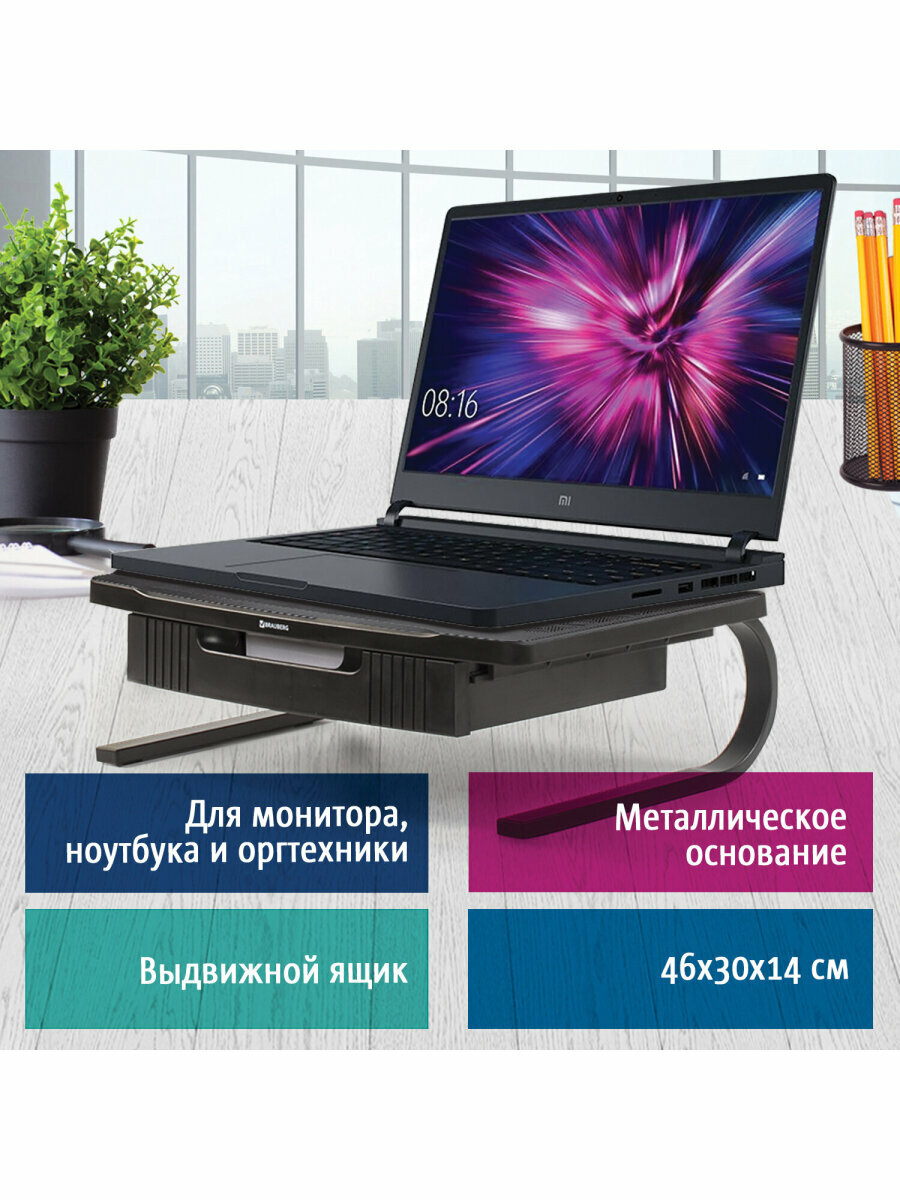 Подставка для принтера, оргтехники, монитора, ноутбука, металлическое основание, 1 отделение, 460x300x145 мм, Brauberg, черная, 512667: сравнение цен, характеристики, фото, актуальное наличие и цены.