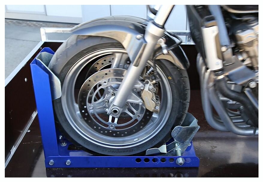 Подставка для перевозки мотоцикла (еще ее называют «ловушкой» для колеса или мотофиксатором) снабжена стальным упором и балансирным захватом переднего колеса мотоцикла. Крепится к днищу прицепа. Конструкция подставки предусматривает регулировку положения захвата под колеса различного диаметра от 13' до 19' (от 450 до 750 мм), что позволяет использовать «ловушку» для разных моделей мотоциклов. Упор "ловушки" имеет коническую форму, ширина 175 мм, у основания ширина 45 мм.