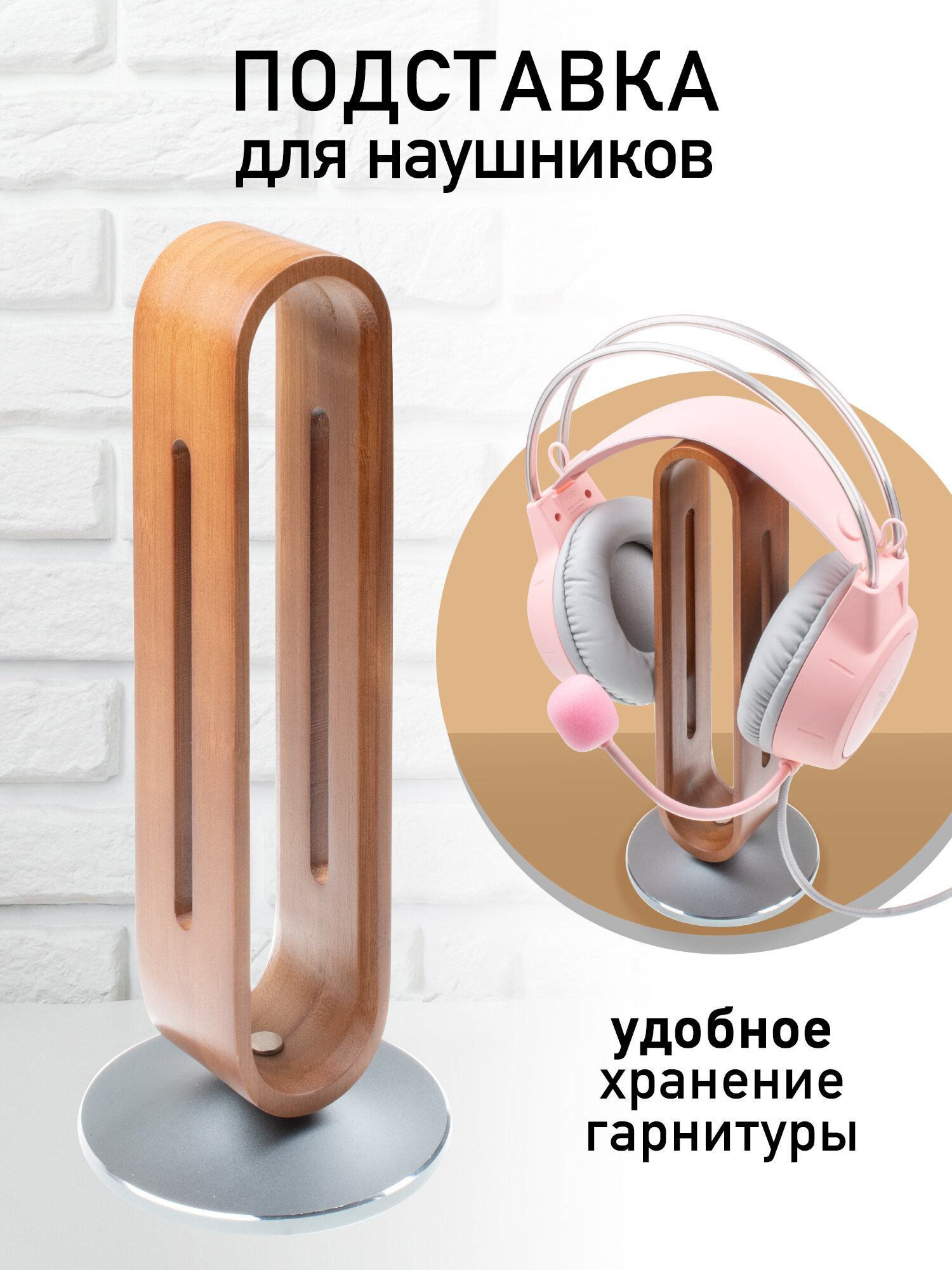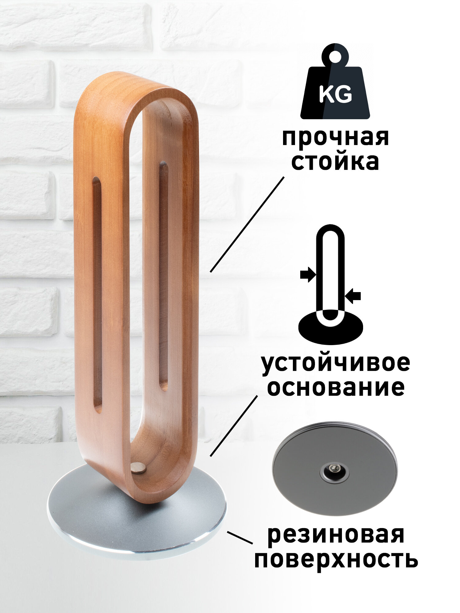 Каждый предмет на столе должен иметь свое место, и желательно, чтобы не страдала эстетическая сторона восприятия. Все ручки в подставке, бумаги в лоточке, а наушники на подставке. Строгий лаконичный дизайн, основание подставки утяжеленное и выполнено из алюминиевого сплава, сама подставка выполнена из бамбука в виде вытянутого овала, древесина хорошо обработана, затонирована и покрыта лаком. Особенно актуальна подставка для обладателей полноразмерных наушников, удобно размещается в любом месте, на столе, на полке или тумбочке, позволяет избегать перегиба проводов. Просто, функционально и со вкусом. Высота держателя – 22 см. Общая высота подставки 24 см.