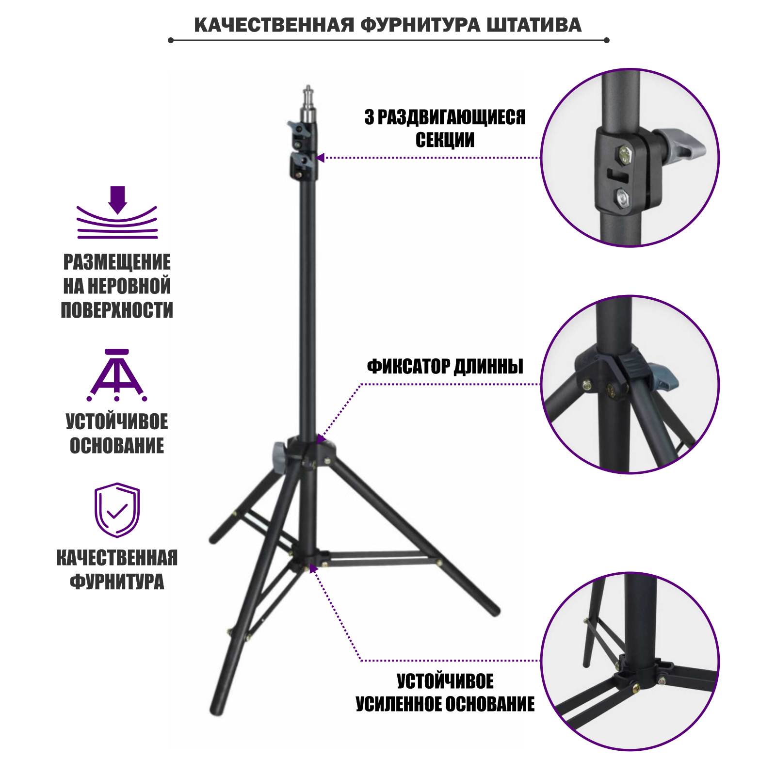 - Телескопический штатив для возможности выбора оптимальной высоты стойки.