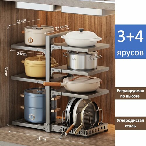 Держатель кухонный, подставка для кастрюль, сковородок, крышек, полка для специй, 3+4 яруса: сравнение цен, характеристики, фото, актуальное наличие и цены.