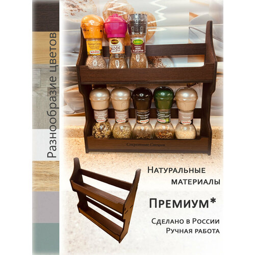 Подставка для специй "Премиум" от ivkolab - это стильное и функциональное решение для организации пространства на вашей кухне. Изготовленная из натурального дерева, подставка имеет два яруса и выполнена в элегантном цвете венге.