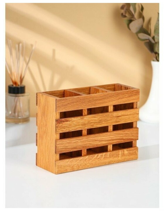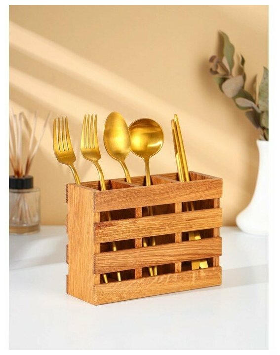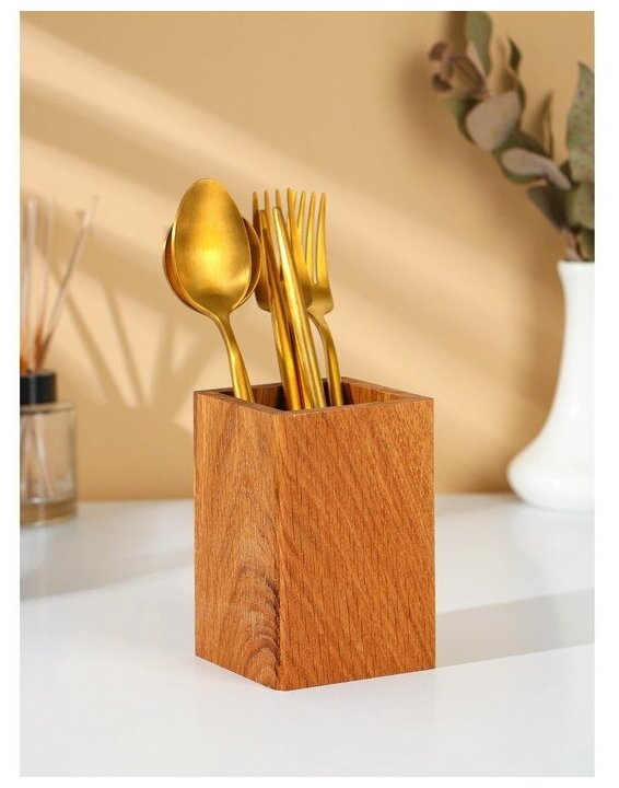 Купить Подставка для столовых приборов Adelica, 12×8×8 см, дуб с доставкой по всей России.