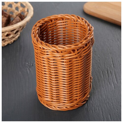 Подставка для столовых приборов Доляна, 13×10×10 см, цвет кофейный. Набор - Нет; Цвет - Коричневый; Форма - Цилиндрическая; Рисунок - Нет; Материал - Пластик; С поддоном - Нет;