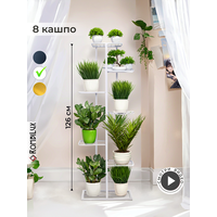 Купить Подставка для цветов RombiLux, металлическая, напольная, на подоконник, белая, на 8 кашпо с доставкой по всей России.