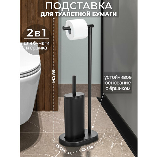 Подставка для туалетной бумаги с ёршиком от бренда ELCASA "Чёрная" общим размером 23,5х15,5х68 см выполнена из металла с пудровым покрытием и имеет пластиковые элементы. Вертикальный металлический держатель с подвесом для рулона имеет несгибаемую форму. Горизонтальный подвес для рулона вертикально не поднимается. Овальное основание (подставка) держателя выполнена из пластика. Ёрш с силиконовой щёточкой помещён в двойной контейнер размером 11,5х7,5х27 см. Внешняя часть контейнера выполнена из металла, внутренняя вставка – из пластика. Весь двойной контейнер снимается с подставки, поэтому его легко мыть. Поскольку мягкая щётка у ёршика выполнена из силикона, она легко удаляет загрязнения, не оставляет царапины на поверхности унитаза и легко отмывается. Длина ручки ёршика до овального пластикового элемента 11 см, общий размер ёршика с ручкой 37х4 см. Стильный напольный держатель подойдет к любому интерьеру ванной или туалета, от минимализма до лофт. За счёт эргономичной формы вертикальному органайзеру найдется место даже в небольшой кабинке туалета. Высокая стойка из металла с пластиковыми элементами устойчива на полу и не требует дополнительных действий при установке. Просто поставьте её на пол в санузел рядом с унитазом без всякого сверления. Все необходимые предметы гигиены будут под рукой. Не рекомендуется применять абразивные моющие средства. Поставляется в красочной картонной коробке. Бумагодержатель станет незаменимым помощником для создания комфорта в вашем доме! В коллекции бренда ELCASA представлено много функциональных товаров и стильных аксессуаров для вашего дома, которые позволят создать комфорт и уют в любом пространстве.