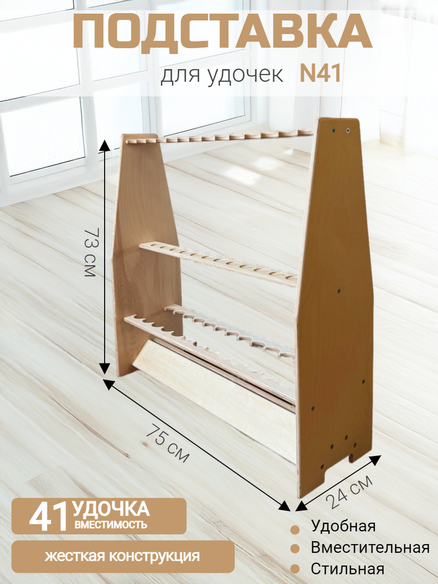 Подставка для удочек N41, дерево, вертикальная фиксация, бежевая, 41 место: сравнение цен, характеристики, фото, актуальное наличие и цены.