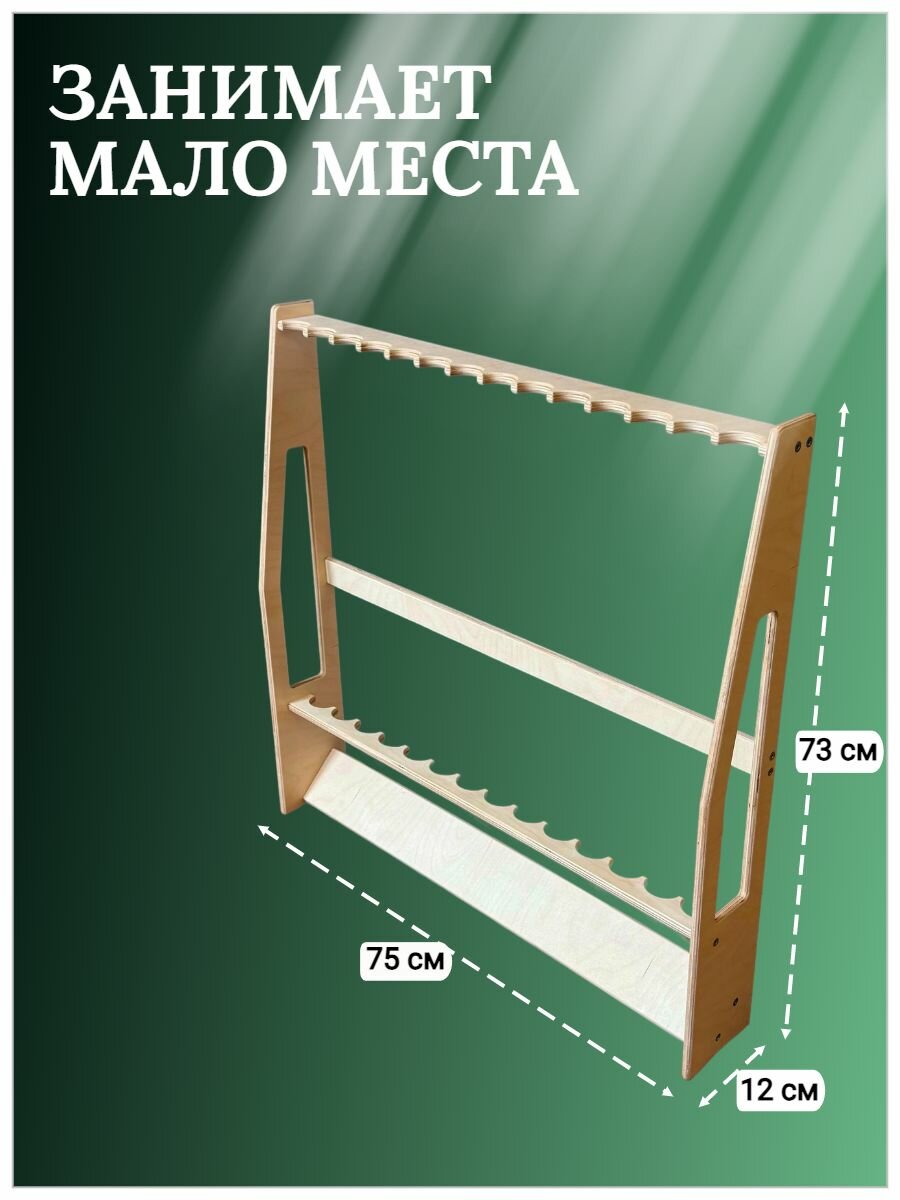 Стойка Р14 - самая компактная подставка для удилищ из нашей коллекции, созданная для удобного и аккуратного хранения ваших удочек при условии ограниченного пространства.