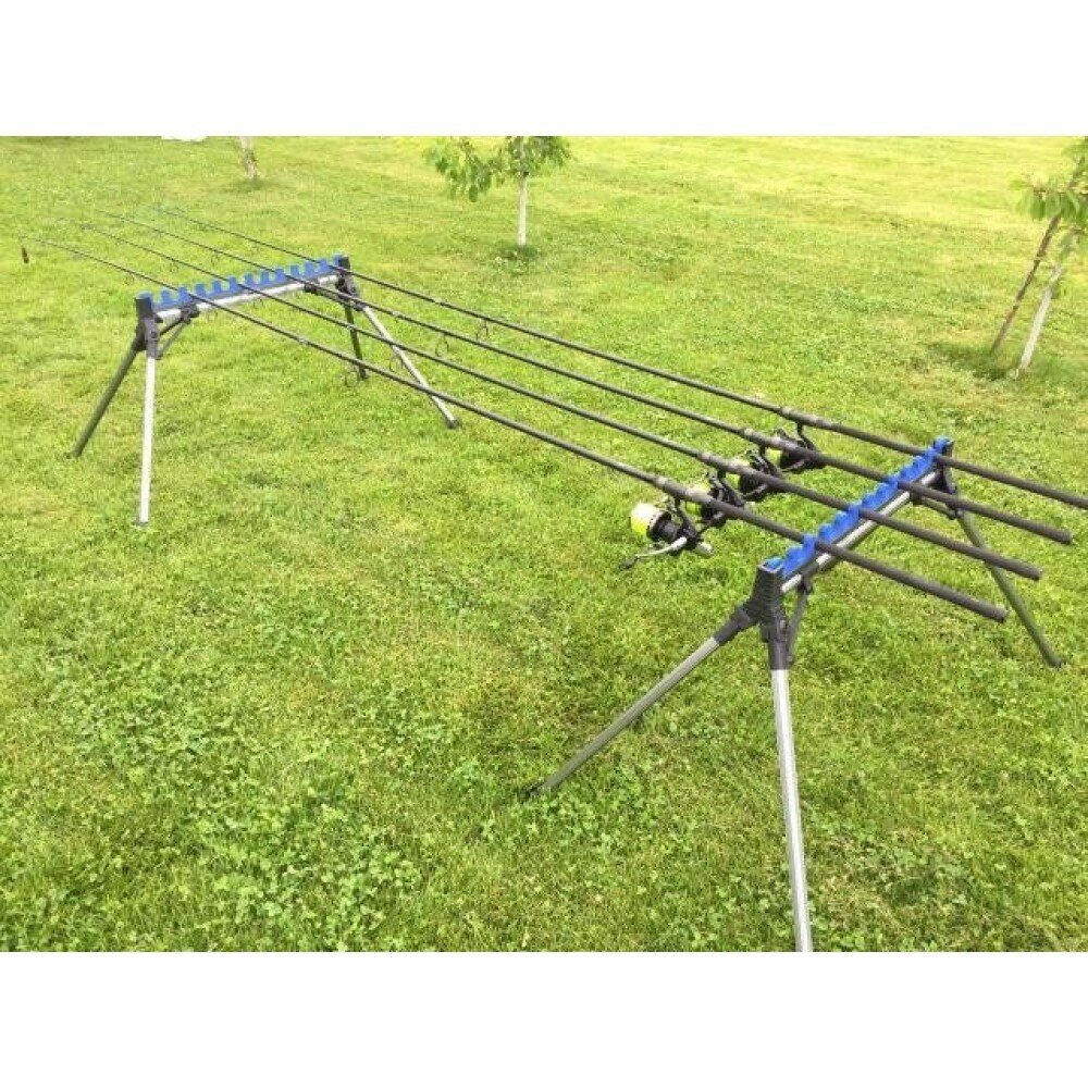 Подставка под удилища или подставка-гребёнка это-прочный и многофункциональный штатив из алюминиевого сплава с 4 телескопическими ножками с посадочными местами удилищ. Длину каждой из 4 ножек можно регулировать независимо друг от друга, для чего просто требуется отщелкнуть зажим и выдвинуть ножку на необходимую высоту. Эта подставка для удилищ позволяет скрадывать неровности, делая удобной ловлю с дамбы или бугристого берега. На концах ножек подставки для рыбалки имеются заострения, которые облегчают вдавливание в грунт или песок.