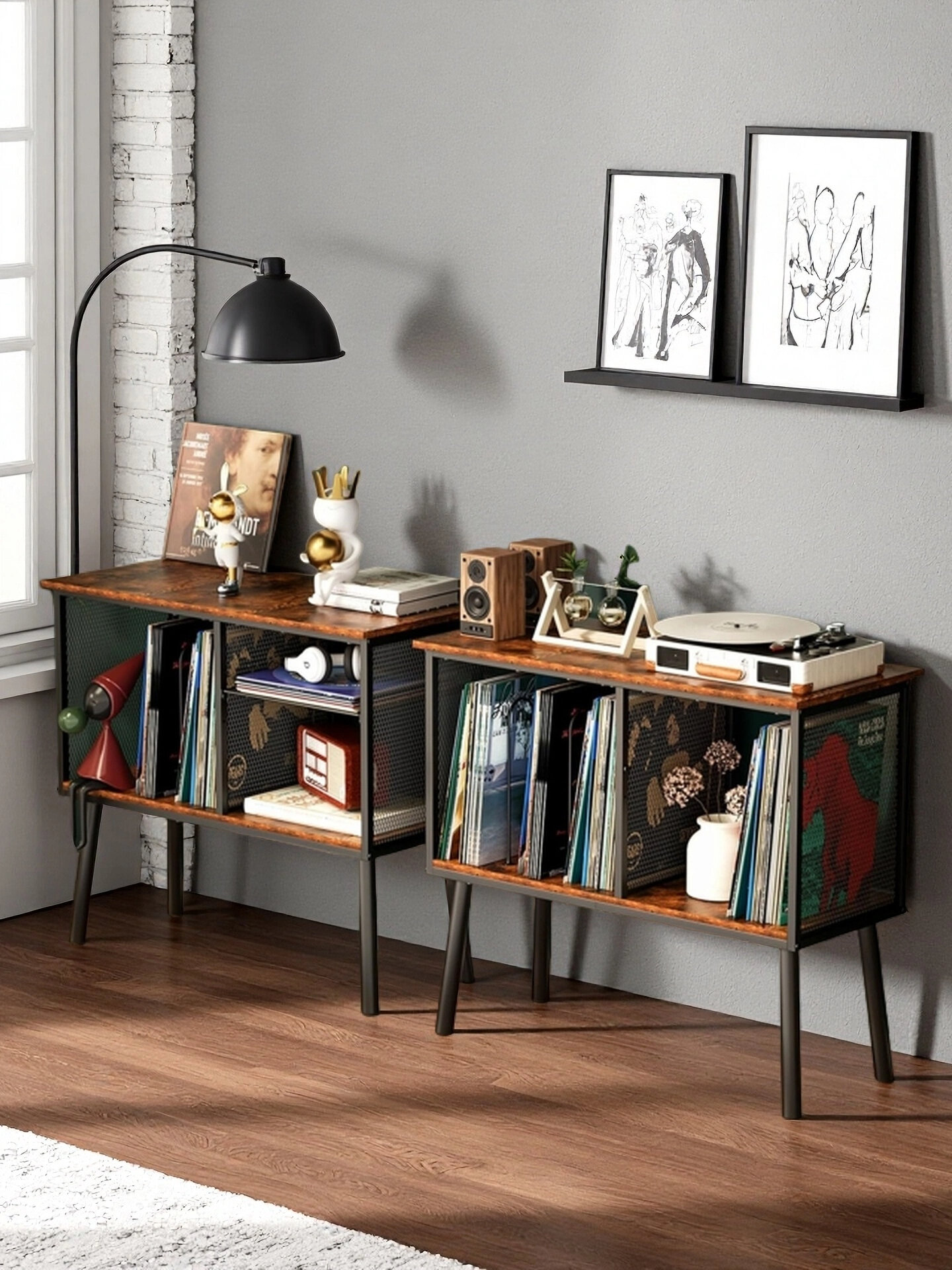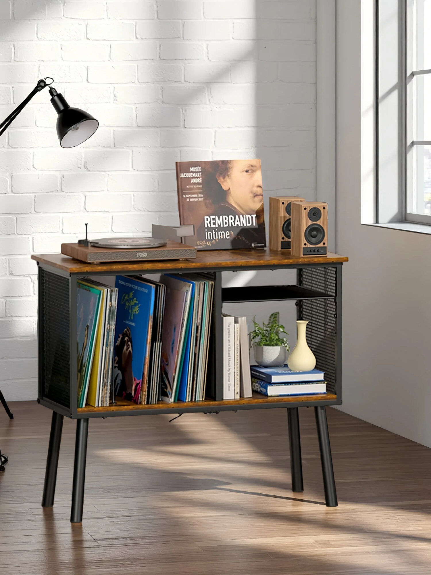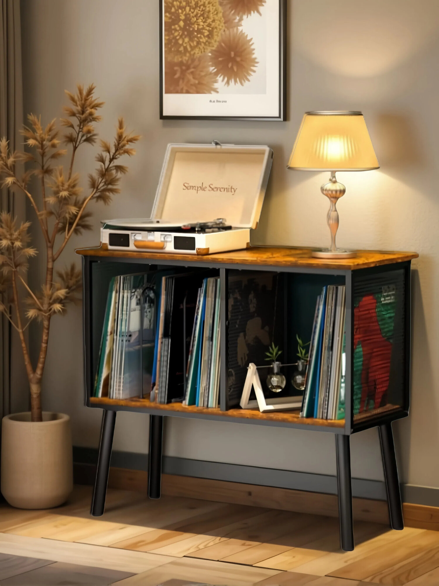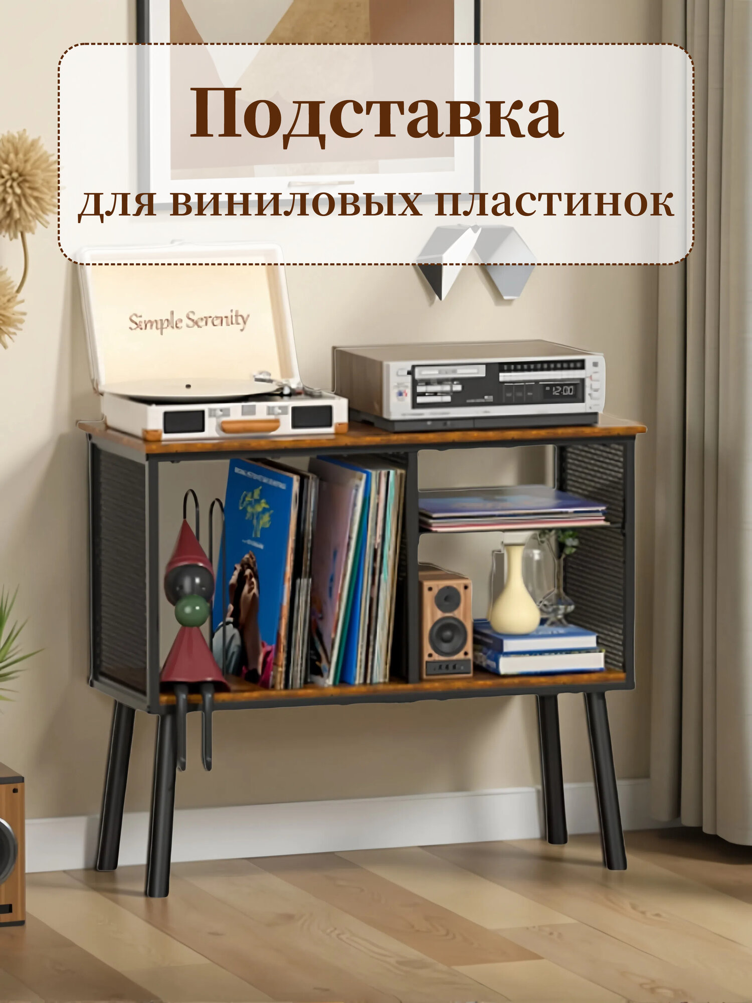 Стильная тумба для винилового проигрывателя — идеальное решение для ценителей аналогового звука! Компактный стол для винилового проигрывателя обеспечивает устойчивость техники, а встроенная полка для виниловых пластинок вмещает до 40 дисков. Прочная подставка для винилового проигрывателя снижает вибрации, улучшая качество звука. Внизу расположен ящик для виниловых пластинок — удобное хранилище для редких изданий. Подставка под пластинки виниловые на верхней панели позволяет быстро менять записи. Многофункциональная тумба под виниловый проигрыватель сочетает лаконичный дизайн, защиту коллекции и эргономику. Выбирайте надежное решение для вашего проигрывателя пластинок! Виниловый проигрыватель заслуживает достойной основы! Наша тумба для винила — это: Антивибрационная подставка для пластинок и проигрывателя. Вместительная полка для виниловых пластинок + скрытый ящик для хранения. Прочный столик для винилового проигрывателя в современном стиле. Превратите прослушивание виниловых пластинок в эстетическое удовольствие! Закажите тумбу — ваша коллекция и аудиотехника в безопасности!