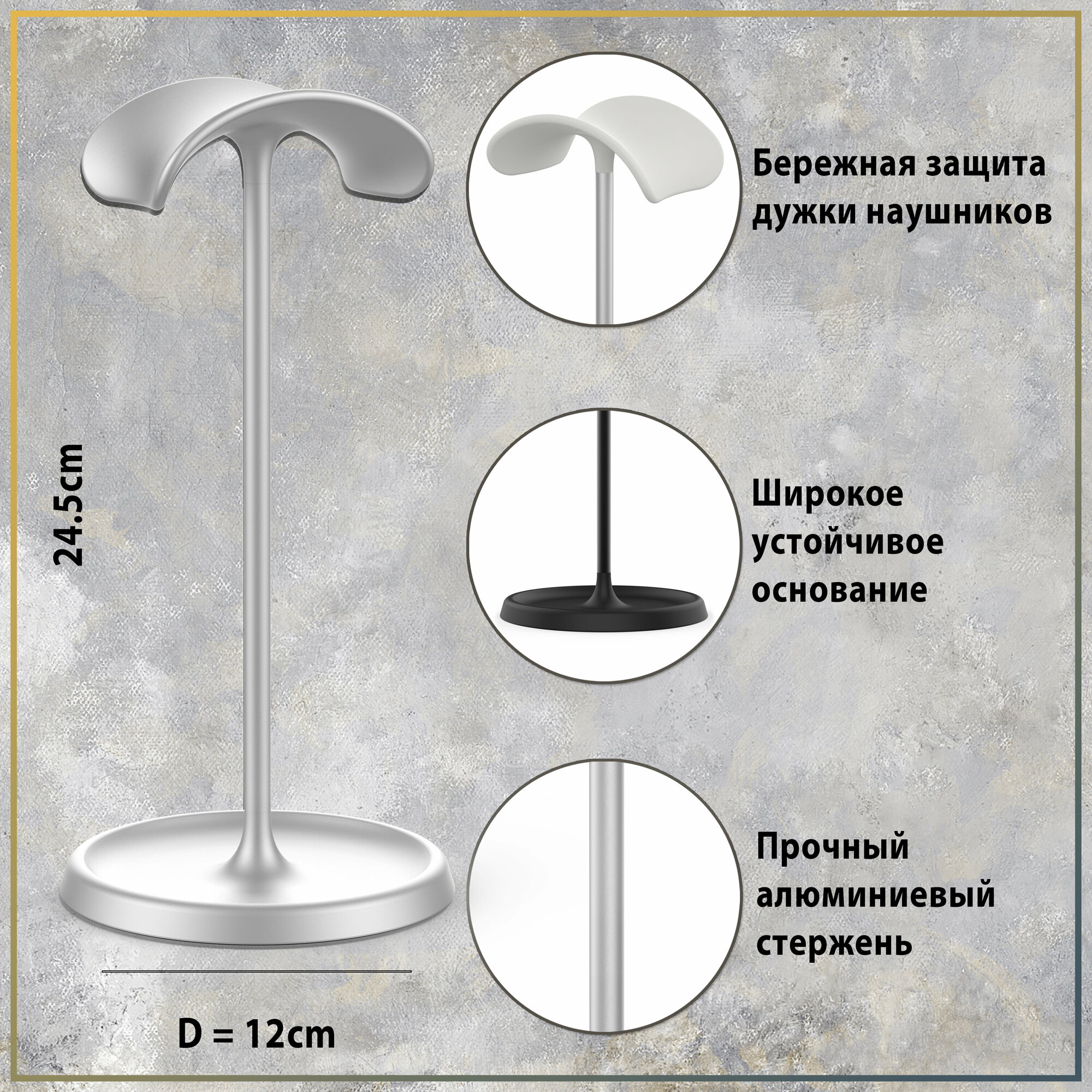 Подставка для всех моделей полноразмерных наушников и игровых гарнитур, алюминий / ABS пластик, серебристая