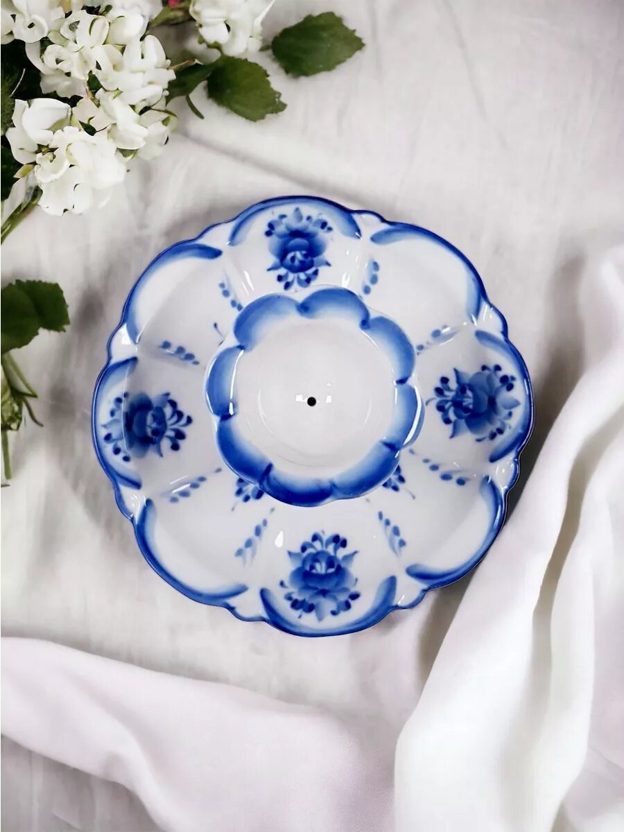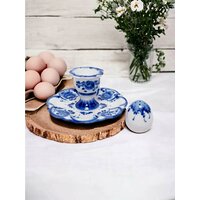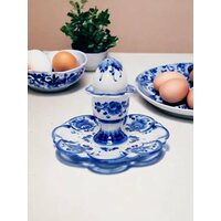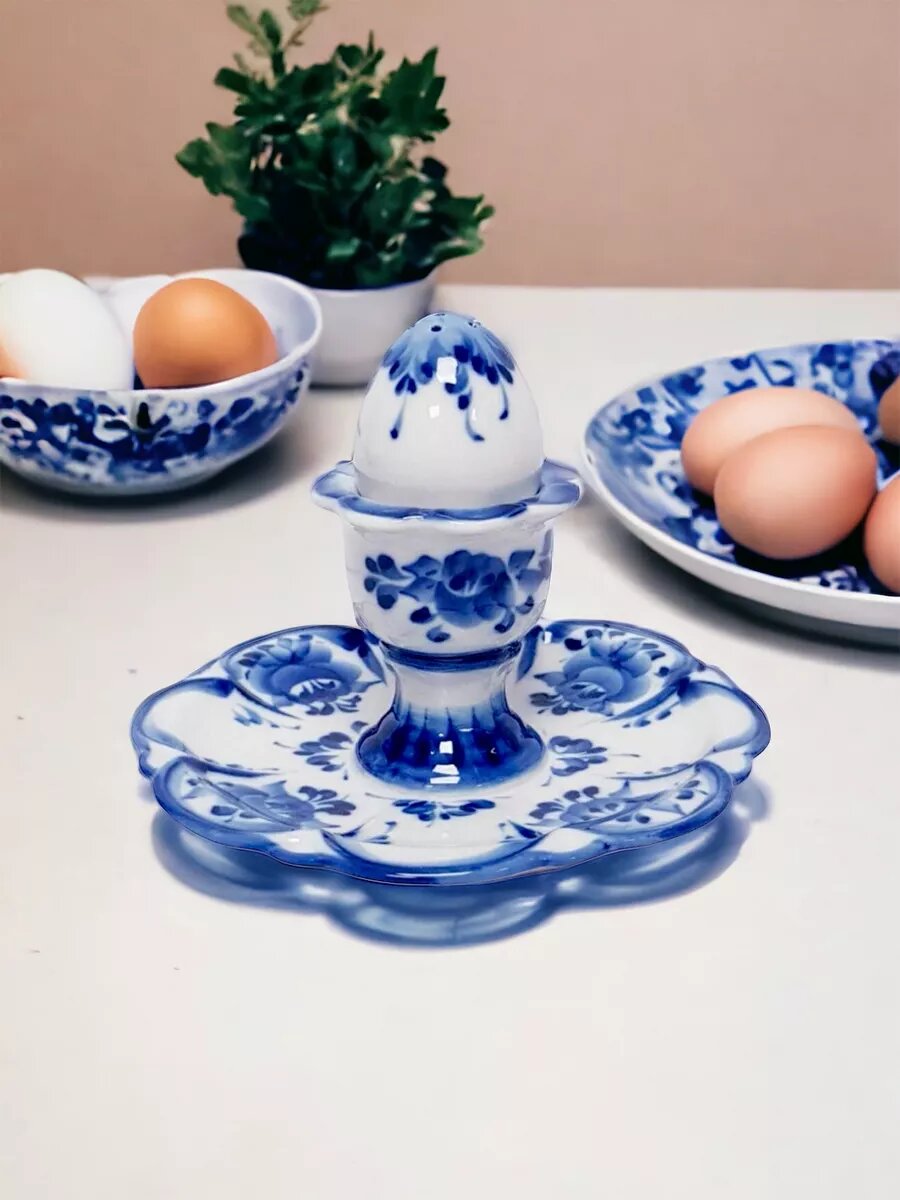 Фарфоровая подставка для яиц в гжельской росписи придаст сервировке вашего стола аристократическую нотку: тарелочка с нежнейшим кобальтовым узором, выполненным традиционным теневым мазком, служит своеобразным обрамлением к изящной розетке, в которой удобно разместится и яйцо, сваренное вкрутую или всмятку. Безусловно, этот предмет сервировки нельзя отнести к основным, но он привносит в нее дополнительную функциональность и комфорт. Утро, начавшееся за столом, сервированным подставками из гжельского фарфора, подарит вам и вашим близким массу положительных эмоций, «задавая тон» предстоящему дню: завтрак приобретает особую торжественность, помогая прогнать остатки сна, заряжая энергией и настраивая на рабочий лад – да и аппетитность блюда при этом значительно возрастает.
