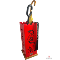 Купить Подставка для зонтов Syndicate: «Китайский Дракон». Из стали. Основание — Натуральный Дуб. 24х24х56см. Красный. с доставкой по всей России.