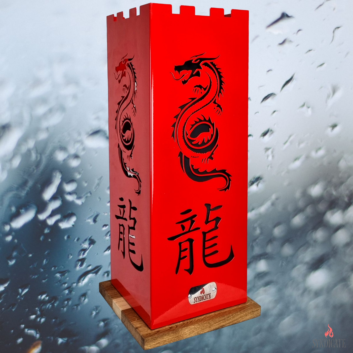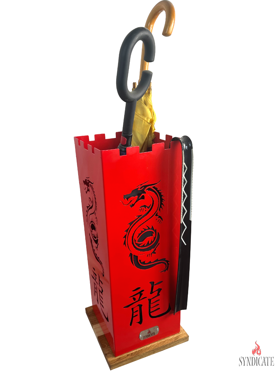 Подставка для зонтов Syndicate: «Китайский Дракон». Из стали. Основание — Натуральный Дуб. 24х24х56см. Красный.: сравнение цен, характеристики, фото, актуальное наличие и цены.