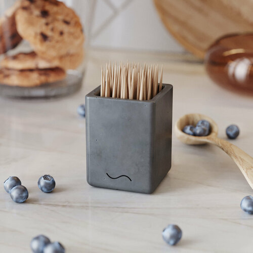 Зубочистница Emily производится нашими мастерами вручную из материала с уникальной фактурой — архитектурного бетона: лёгкая пористость на поверхности придаёт изделию свой особый шарм.