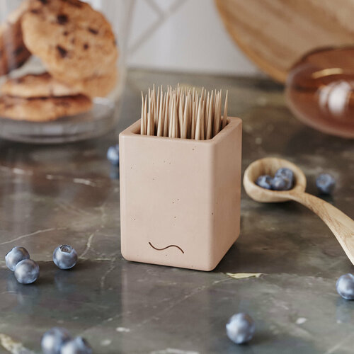 Зубочистница Emily производится нашими мастерами вручную из материала с уникальной фактурой — архитектурного бетона: лёгкая пористость на поверхности придаёт изделию свой особый шарм.