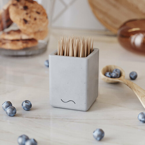 Зубочистница Emily производится нашими мастерами вручную из материала с уникальной фактурой — архитектурного бетона: лёгкая пористость на поверхности придаёт изделию свой особый шарм.