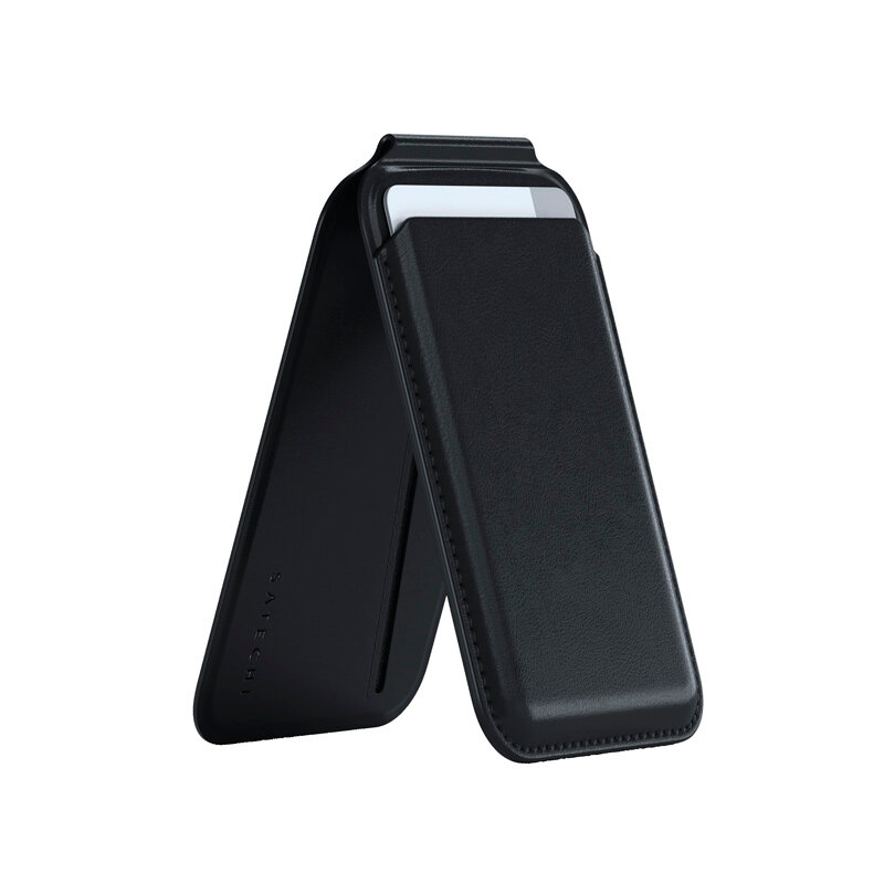 Магнитный кошелек-подставка Satechi Magnetic Wallet Stand MagSafe (ST-VLWK) Black идеально сочетает в себе стиль, функциональность и устойчивость. Это мощный дополнительный аксессуар и идеальный компаньон для ваших повседневных нужд. Разработанный с использованием совместимой с MagSafe технологии, этот элегантный кошелек из веганской кожи легко и надежно крепится к вашему iPhone с помощью защелкивающегося соединения, поэтому вы можете удобно носить с собой карты, удостоверение личности или даже наличные, куда бы вы ни пошли. Универсальный магнитный кошелек также разработан как прочная и надежная подставка для вашего iPhone, предоставляя вам возможность без помощи рук просматривать веб-страницы, транслировать видео или совершать звонки FaceTime как в портретном, так и в ландшафтном режимах.