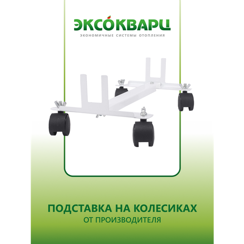 Подставка передвижная на колёсиках под кварцевый обогреватель. Прочная и устойчивая конструкция разработана специально для установки отопительных панелей. Все детали изготовлены из высококачественного металла. Подставка компактна и удобна в использовании, позволяет легко передвигать тяжелый обогреватель на подставке в любое место помещения, где тепло наиболее необходимо, а также надежно удерживает тяжелый обогреватель в вертикальном положении. Полимерное покрытие (специальная порошковая краска) придает подставке эстетичный вид, защищает от коррозии и повреждений. Поворотные колеса из плотной, стойкой к истиранию резины ездят бесшумно, не пачкают пол. Кварцевый обогреватель устанавливается в вертикальные, точно рассчитанные по ширине, пазы без монтажа. Ширина паза 29 мм.