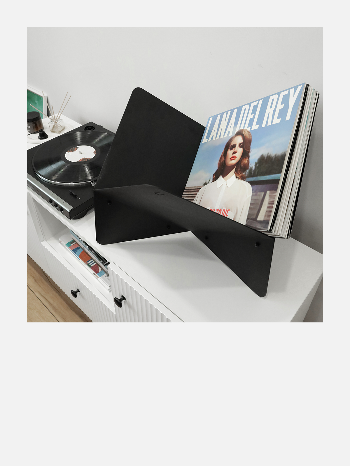 Эта подставка-органайзер представляет собой идеальное решение для тех, кто ценит эстетику винила и желает элегантно организовать свою коллекцию.
